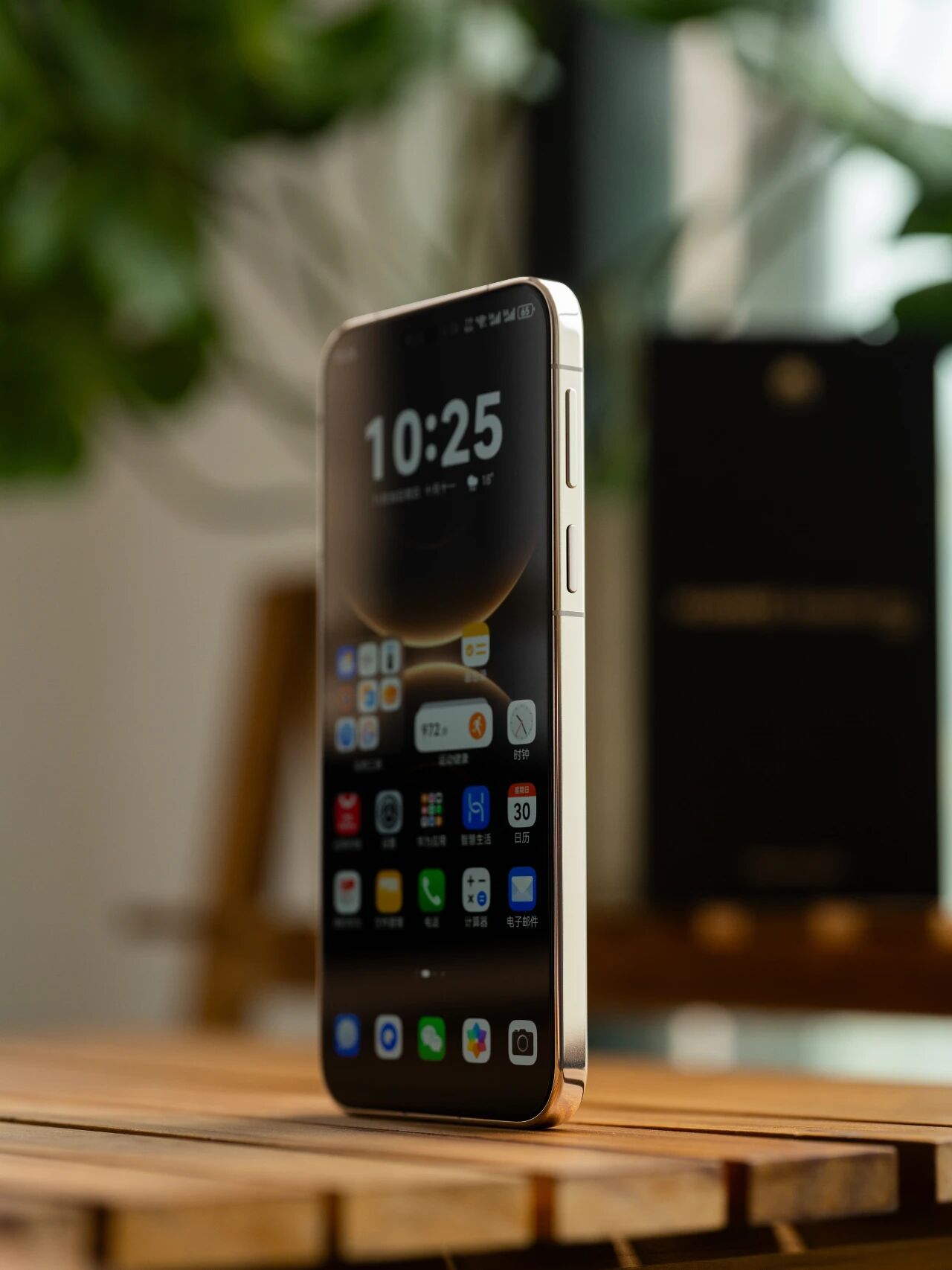 其实对于此次华为Mate 80系列的外观来说,纯直屏+双环设计的辨识度都是非常强的。我们入手的这款是晨曦金经典配色的16GB+512GB存储组合版。机身采用全金属中框搭配锦纤材质后盖,光线下会泛出细腻的金属光泽,质感比图片呈现得高级感更强。7.95mm纤薄厚度结合圆润边缘的过渡,有相当贴合的握持感,完全不像一款配备大屏的旗舰机 。