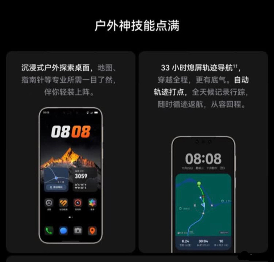 另外,如果开启极限续航模式,华为Mate 80 Pro在最长13天的超长待机中,仍能保障包括轨迹记录、卫星短信、天气查询等核心户外功能。对于徒步、登山爱好者来说,这相当于一个可靠的数字生存装备。而通信能力更是华为的看家本领。此次华为Mate 80 Pro支持北斗卫星消息,能在无地面网络时发送文字和位置信息。