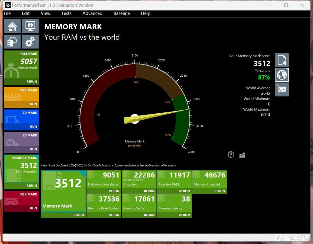 在Performance Test测试中,睿科驰刃 DDR5默认的4800MHz频率下得分2900,内存排名60%前。