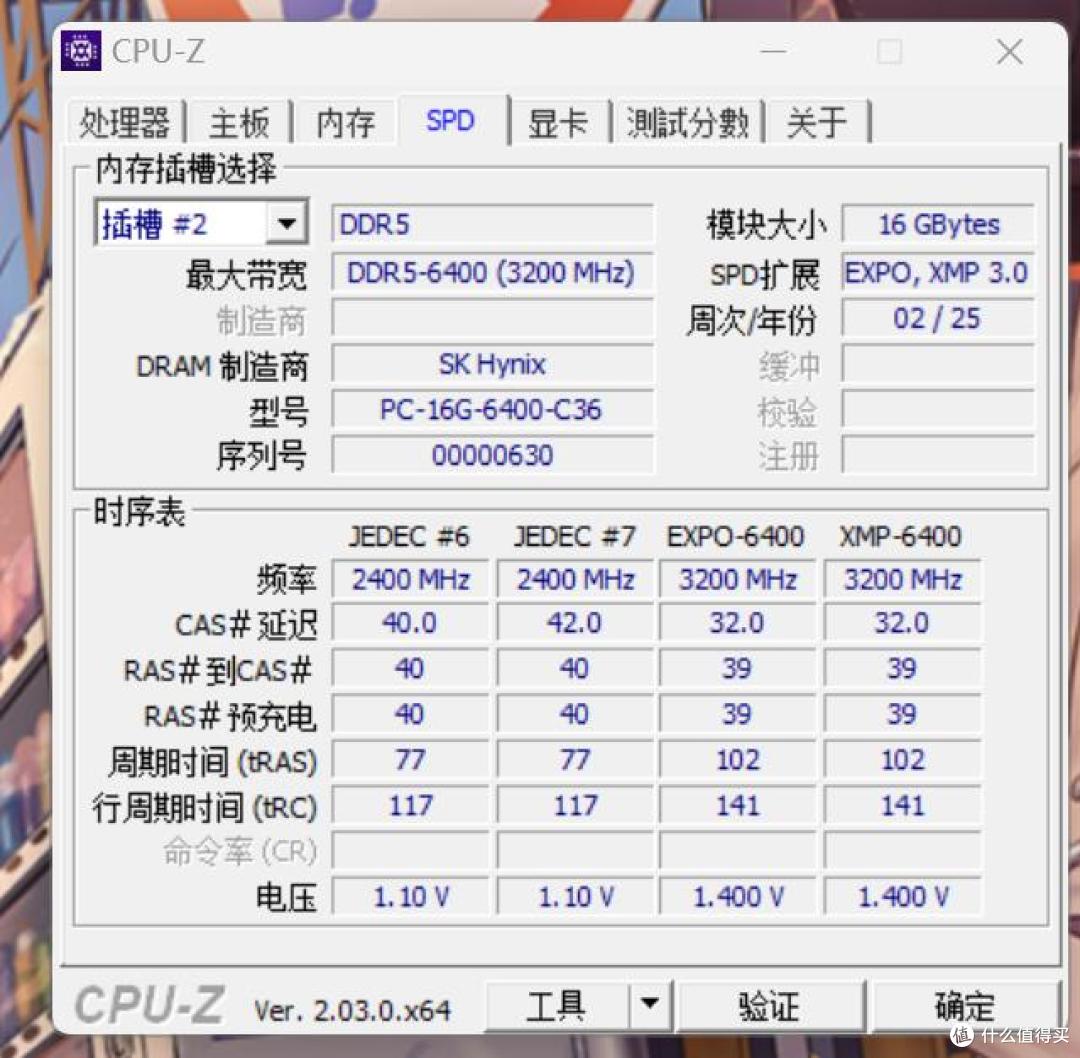 将奥睿科驰刃 DDR5 内存条安装到测试平台后,通过 CPU-Z 软件查看相关信息。在时序表中,单通道频率显示为 3200MHz(等效 6400MHz),时序为 32 - 39 - 39 - 102,电压为 1.400V。从测试参数还能看到,这款内存条选用的是海力士 mdie 颗粒,周次 / 年份显示为 02/25,说明颗粒生产日期较新。