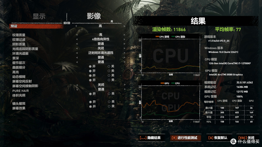 稳定性方面,经过2周的测试,搭载奥睿科驰刃DDR5 内存条不论是跑大型游戏还是日常使用,并未出现蓝屏死机等情况,超频稳定性也是非常的可靠。在《古墓丽影》游戏基准测试里,2K分辨率高画质下, 游戏平均帧数77fps。