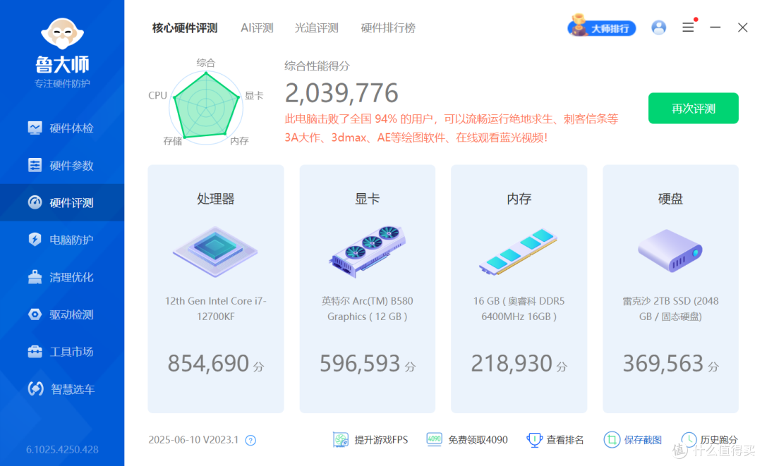 为了全面、准确地测试奥睿科驰刃 DDR5 16G 内存条的性能,我搭建了一套性能强劲的测试平台。具体配置如图。