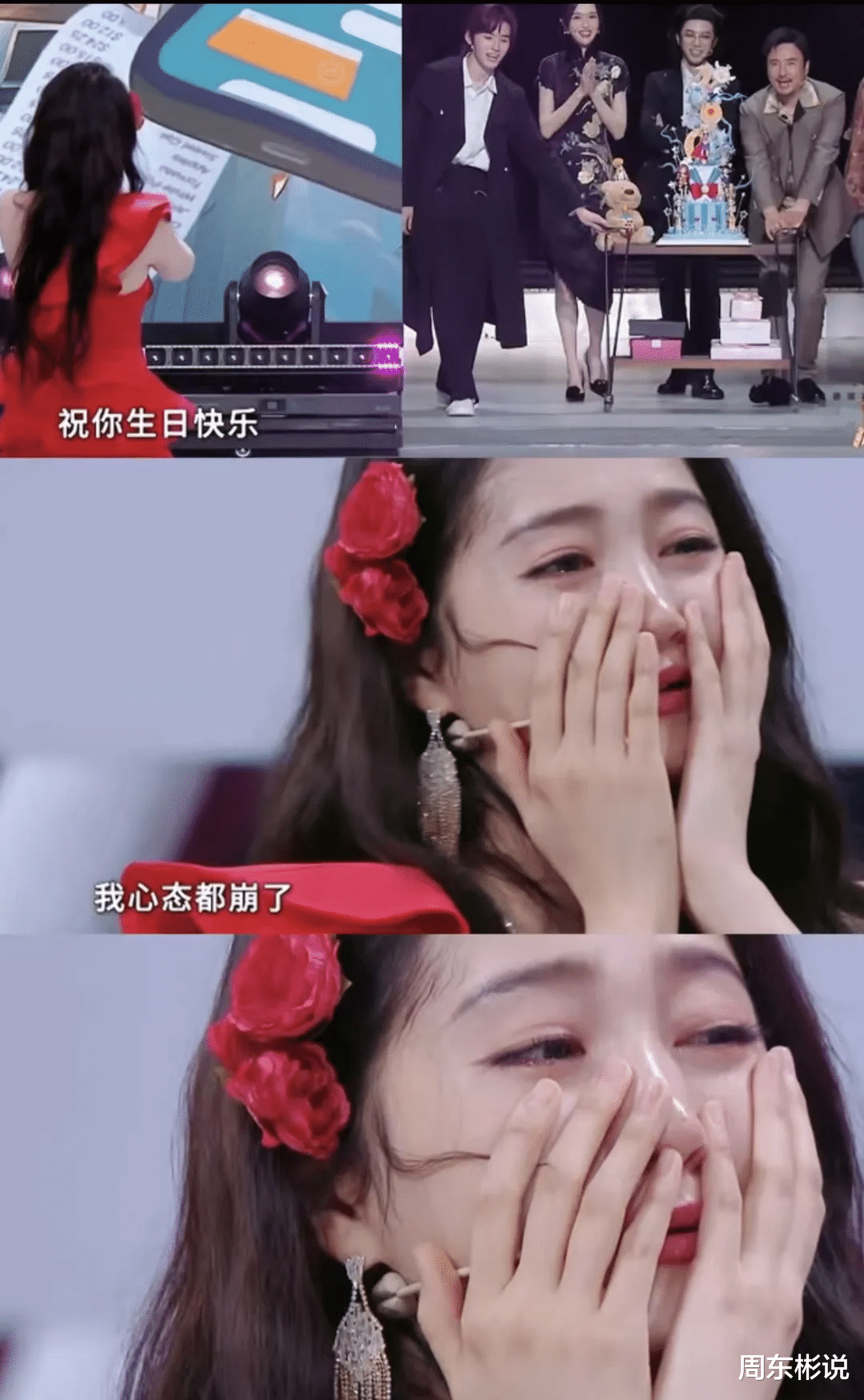 在她害怕到哭时,现场放起VCR,其他嘉宾推着生日蛋糕出现。仿佛刚刚的一切,都是为了此时虚惊一场的“快乐”。