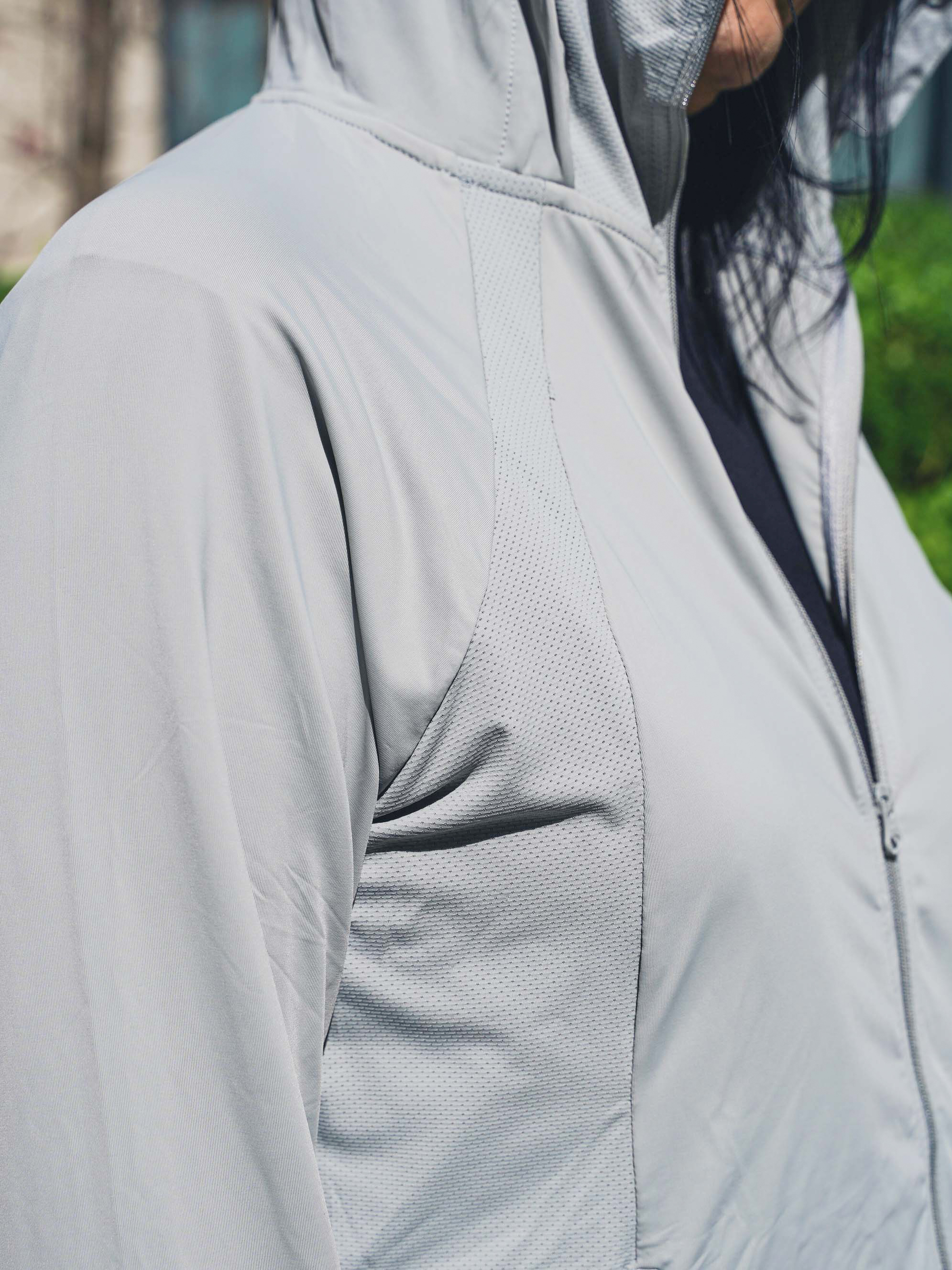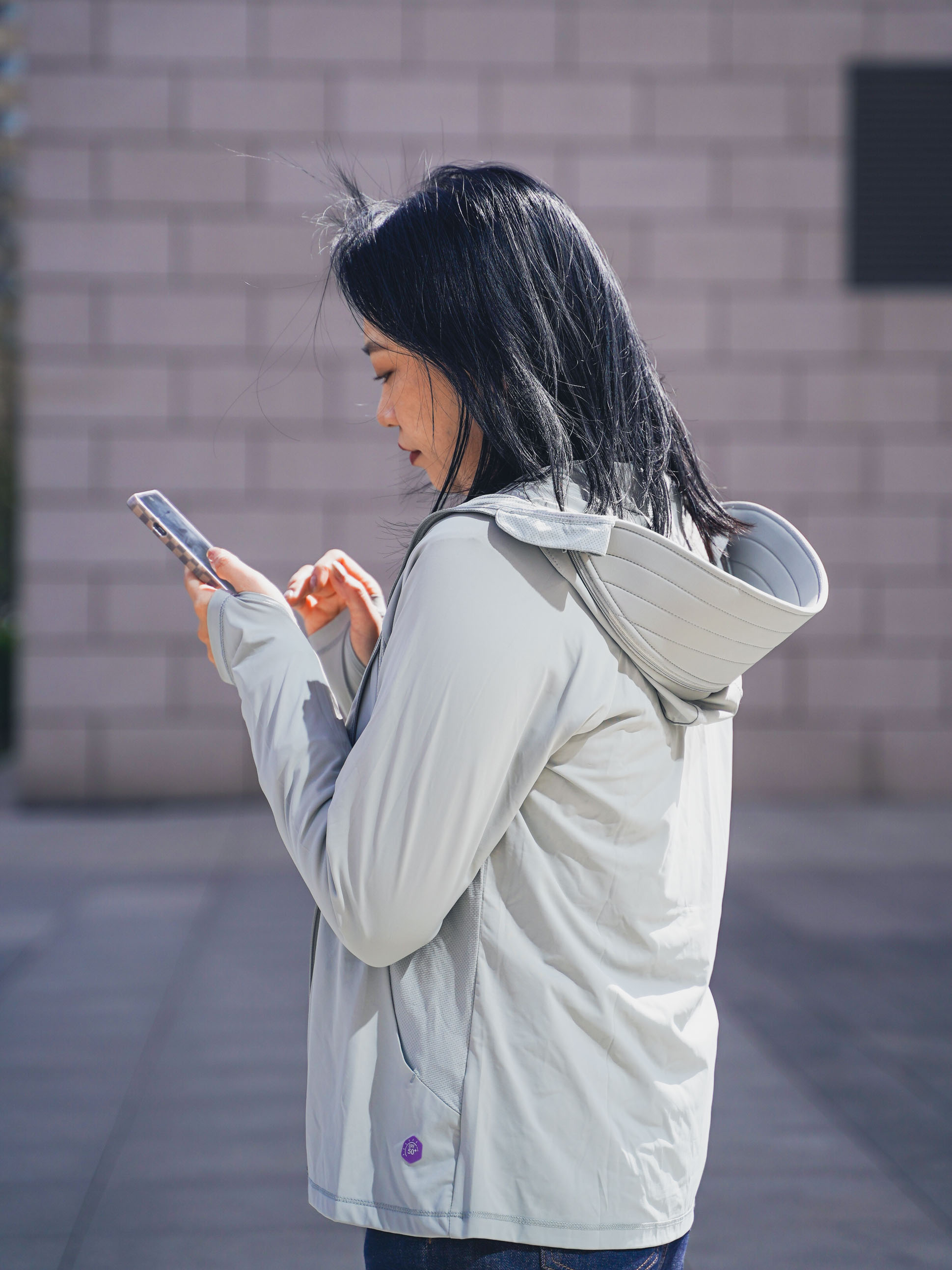 防晒衣不仅要能防晒,还要穿起来透气凉爽。但市面上很多防晒UPF高的防晒衣闷汗闷热严重,而Gakior却死磕高原越野透气标准!这件防晒衣采用了自带凉感因子的STEX-Ⅲ冰晶原纱,配合SOE JREE冰晶凉感黑科技,只要皮肤接触到的位置都能体验到夏日的冰凉,凉感系数远超国标。衣服上身之后就能感受到它带来的凉意,这两天天气已经开始热起来,即使大太阳下穿上它也有凉爽的肌肤触感。