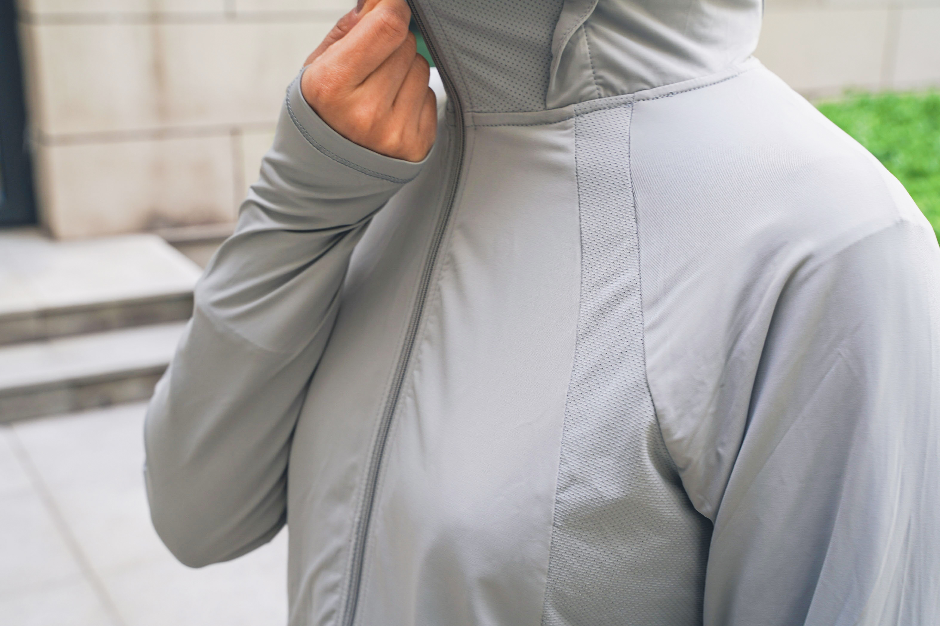 防晒衣上还有很多用心的设计,比如可拆卸帽檐是一大亮点,可根据阳光强度和个人喜好自由安装或拆卸,灵活应对多样环境。帽檐比较硬挺,能够很好的支撑起来,用于连接的拉链拉起来特别顺畅。