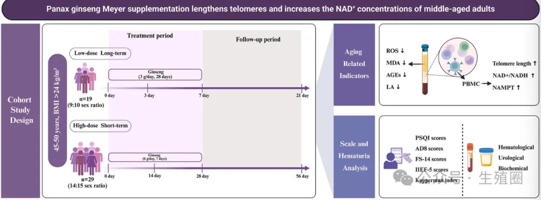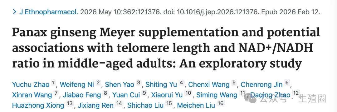 Panax ginseng Meyer supplementation and potential associations with telomere length and NAD+/NADH ratio in middle-aged adults: An exploratory study. J Ethnopharmacol. 2026 May 10;362:121376. doi: 10.1016/j.jep.2026.121376. Epub 2026 Feb 12.