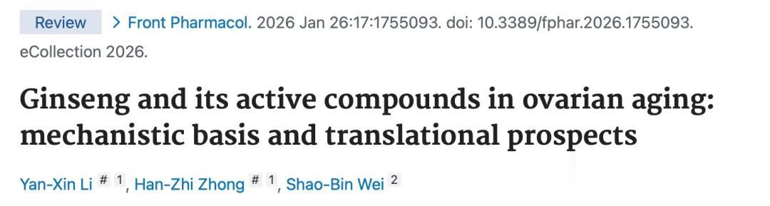 Ginseng and its active compounds in ovarian aging: mechanistic basis and translational prospects. Front Pharmacol. 2026 Jan 26;17:1755093. doi: 10.3389/fphar.2026.1755093.