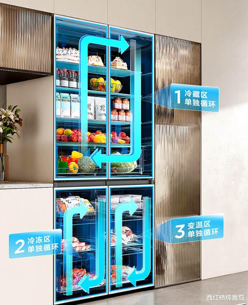 目前冰箱行业最流行的技术是双系统多循环(双循环或者三循环),以及超薄平嵌 ▲