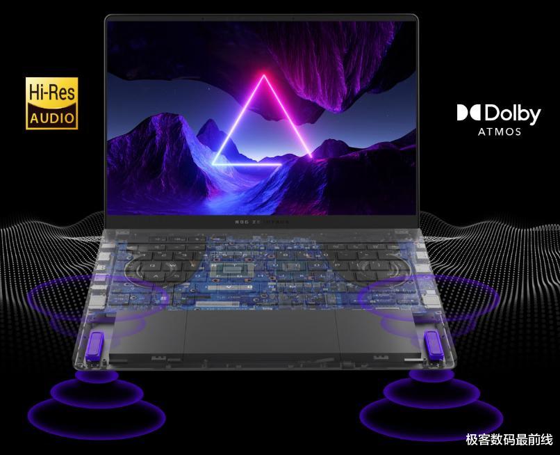 音效方面,ROG幻14 Air 2025采用录音室级音响系统,6个立体扬声器打造主场声势。经Hi-Res小金标认证,其支持杜比全景声,提供沉浸式音效体验。智能降噪技术隔绝环境干扰,无论是游戏中的爆炸声、音乐中的旋律,还是视频中的对话,都能带来干净、震撼的听觉感受。