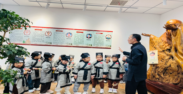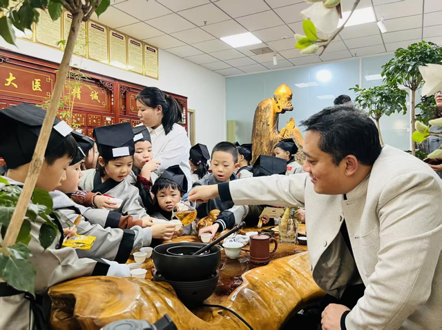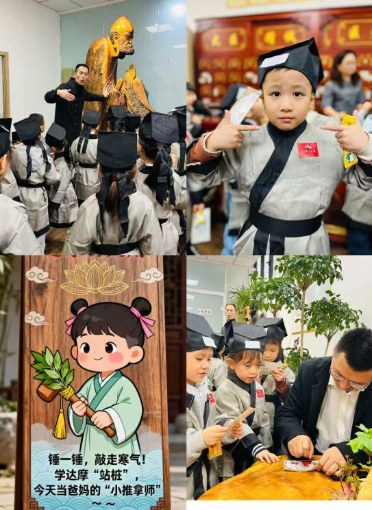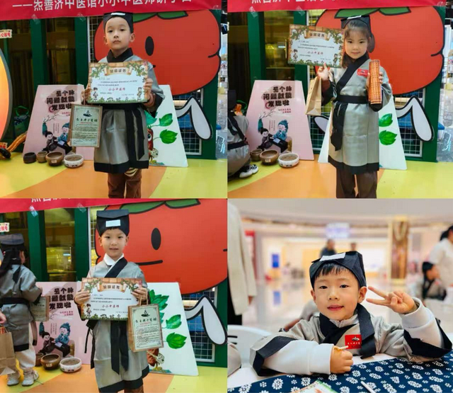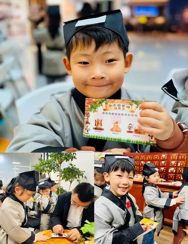汉服启程,穿越时空寻智慧下午14:30,小朋友们在幼儿园老师有序的组织下抵达中医馆。签到整队后,中医馆医师热情迎接,为每一位孩子披上汉服并贴上专属标识,赋予其“小中医师”的身份。一句“欢迎小中医师们穿越时空!今日任务:集齐三位神医的印章,成为健康小卫士!”瞬间点燃了孩子们的探索热情,一场围绕三位中医“守护神”的智慧寻访正式拉开序幕探秘三位守护神,玩转中医大智慧。