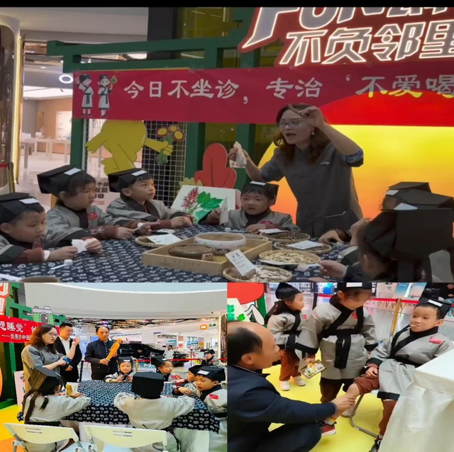 在主讲医师的引导和多名助教、幼儿园老师的协同下,孩子们分成小组,兴致勃勃地轮转于精心设计的三大中医文化互动站点,与千年前的智慧对话: