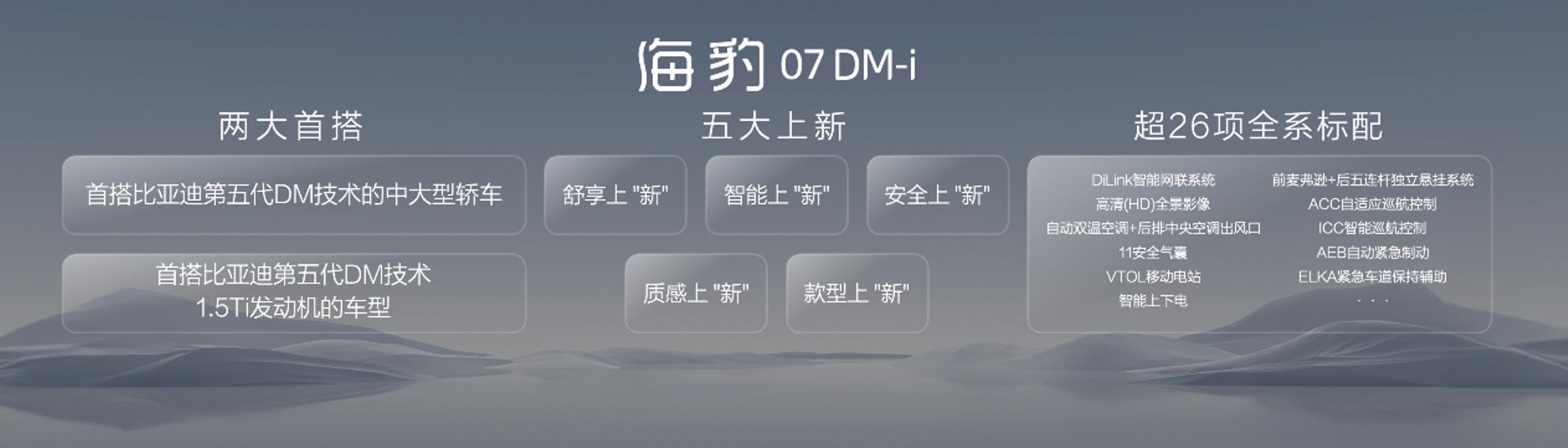 海豹07DM-i:第五代DM技术两大首搭,五大上“新”,超26项全系标配