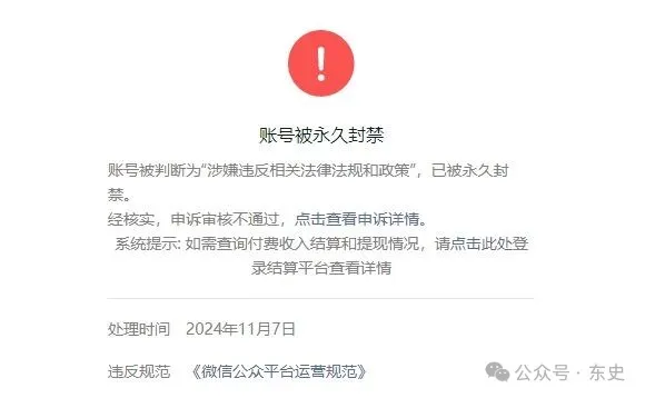 2024年11月7日账号被永久封禁