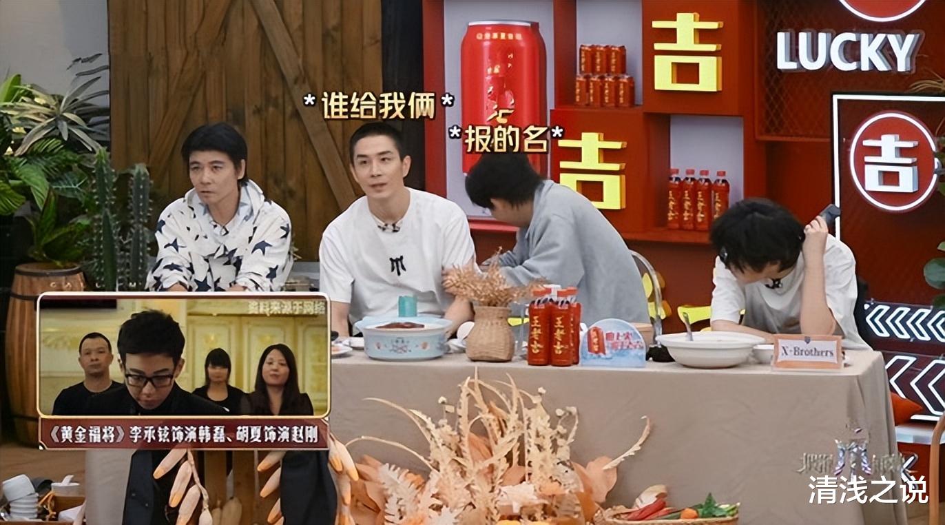 是的,X-Brothers相处初期,早安特意向人安利了这部电影,说他最喜欢的电影是《黄金福将》。当时胡夏立马作出反应,赶紧向早安“封嘴”。但节目组应该听进去了,特意搜索了这部电影,因李承铉、胡夏都在里头,拿它放到“疯”收明珠夜的影视表演明珠评选环节再适应不过了。但胡夏真的不想面对这段古早视频,转头就对早安一顿抱怨加“爆打”,说都怪早安他这张“贱嘴”。