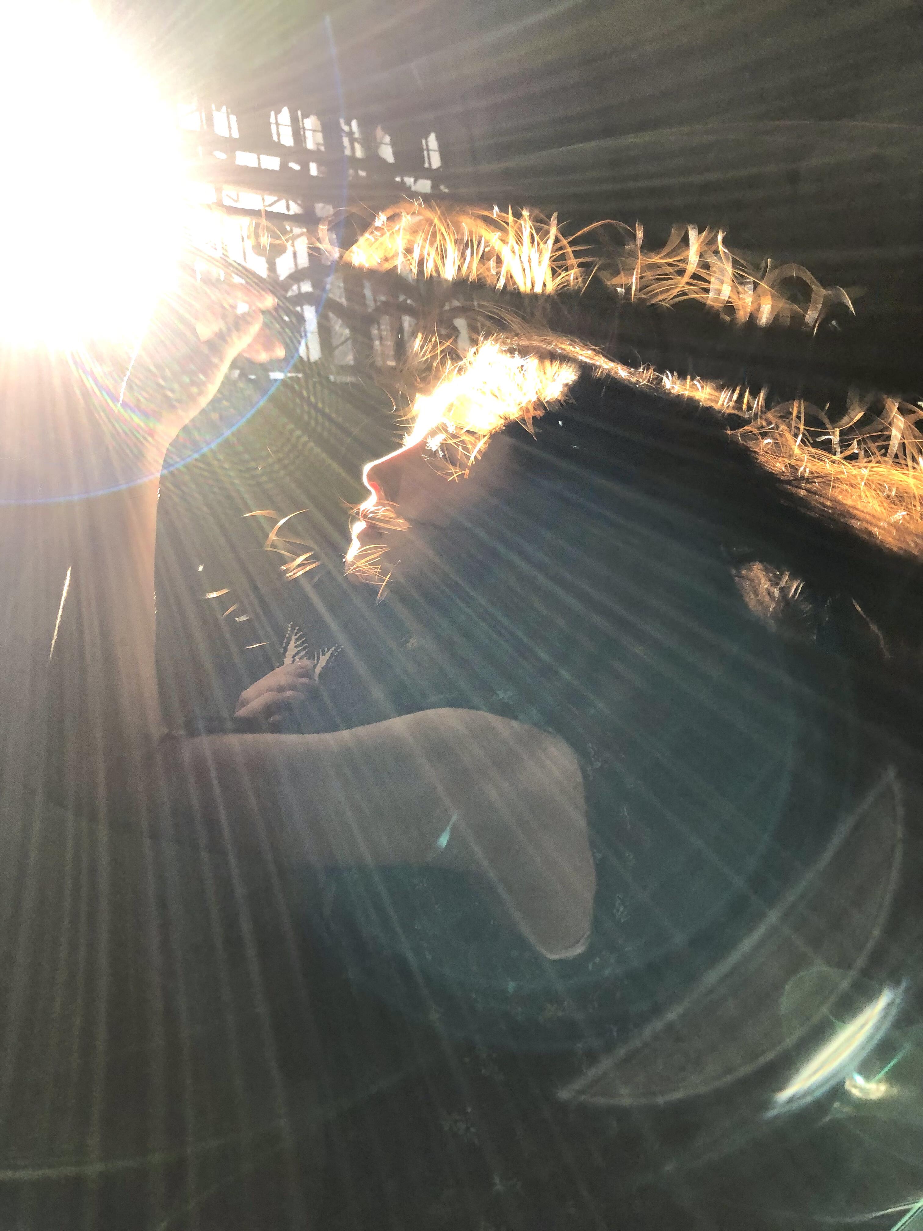 反光类道具包括镜子、金属饰品、水面等,这类道具能反射逆光光线,为人物主体的暗部补光,同时形成有趣的光影互动。如手持小镜子时,引导人物将镜子对准光源方向,反射的光线能照亮面部暗部,平衡逆光下的明暗对比,同时镜子中的光影倒影与人物主体形成呼应,让画面更具创意;利用水面的反光时,选择浅水区让人物站立或蹲下,逆光光线经水面反射后洒向人物的腿部与裙摆,形成波光粼粼的光影效果,增添画面的灵动性。