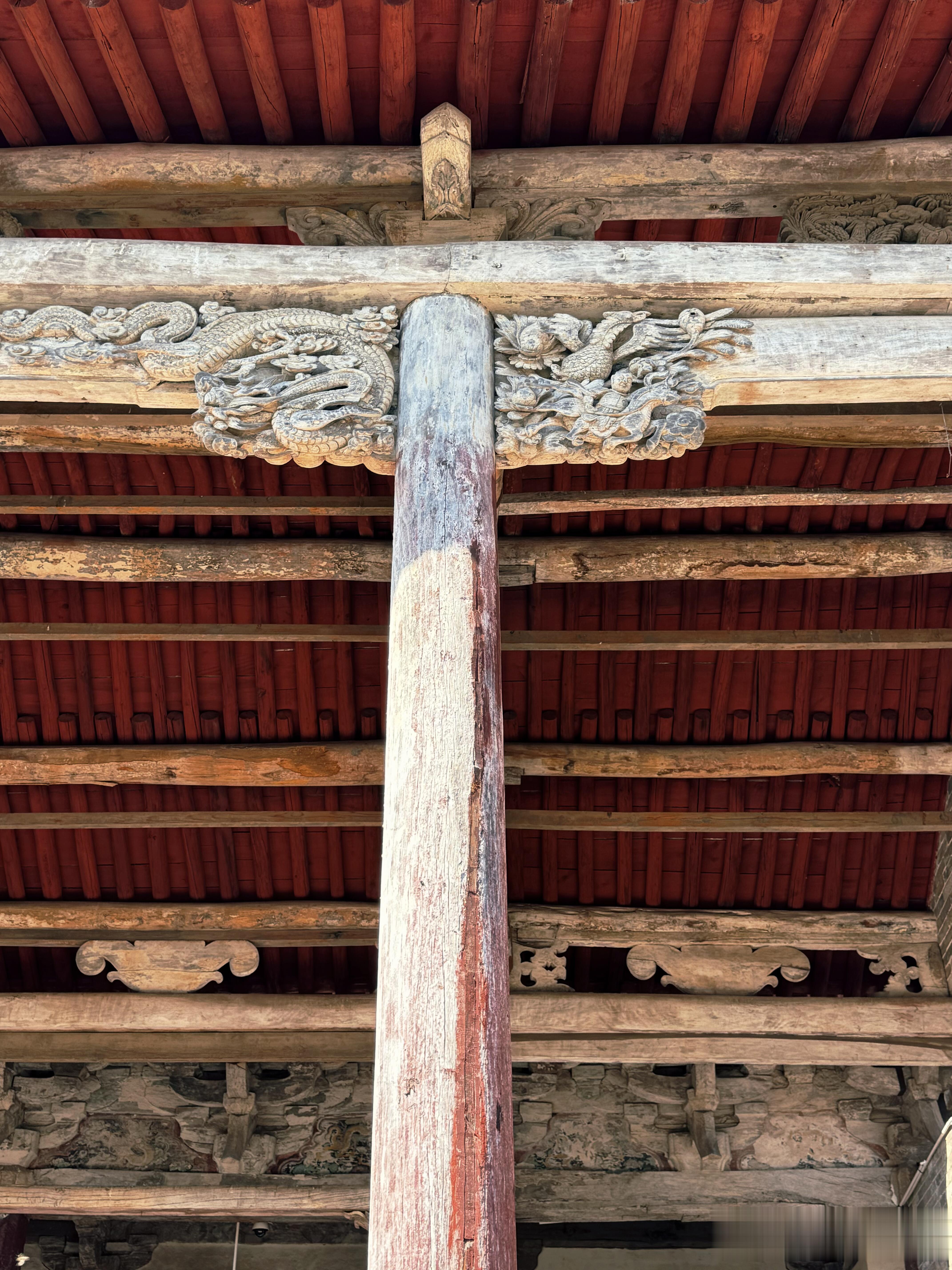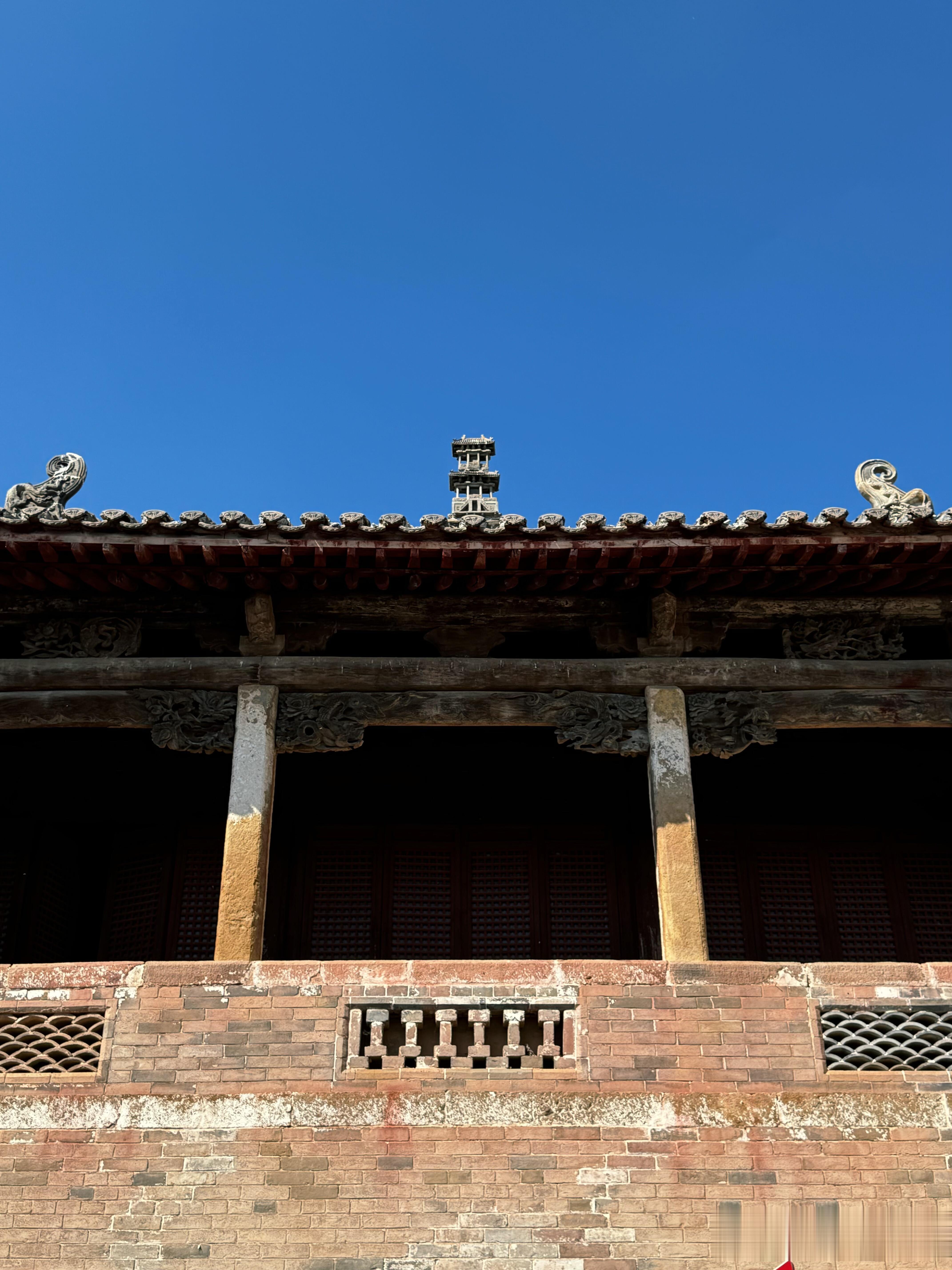 穿过山门,便能看到献殿。献殿建于清乾隆三十五年,它与正殿紧密相连,形成了一个有机的整体。献殿面宽三间,进深五椽,单檐卷蓬硬山顶的设计与山门的庄重形成了鲜明的对比,多了几分柔和与质朴。檐柱柱头设置的雀替、阑额和普拍枋,虽没有斗拱的华丽装饰,却也以简洁大方的风格展现出别样的韵味。看着这些构件,不禁让人好奇,在当时的建筑语境下,为何舍去了斗拱这一传统建筑中常见的装饰元素?有人推测,这可能是因为献殿的功能性需求,不需要过多的装饰来突出其地位,而简洁的设计更能满足祭祀等活动的实用需求;但也有人持不同意见,认为这或许是当时建筑风格转变的一个体现,清乾隆时期流行更加简约的建筑美学,所以在献殿的建造上也有所体现。