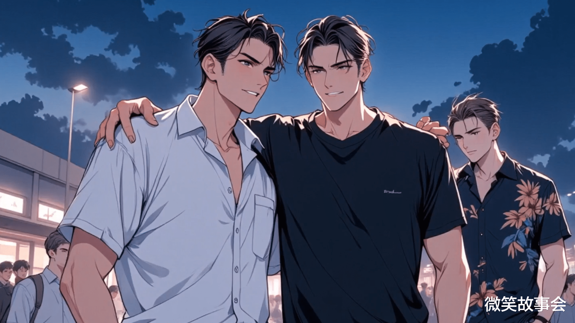 他身边站俩男人:一个剃青茬的高壮汉子,眼神沉,扫我一眼没说话(后来知道叫强哥)。
