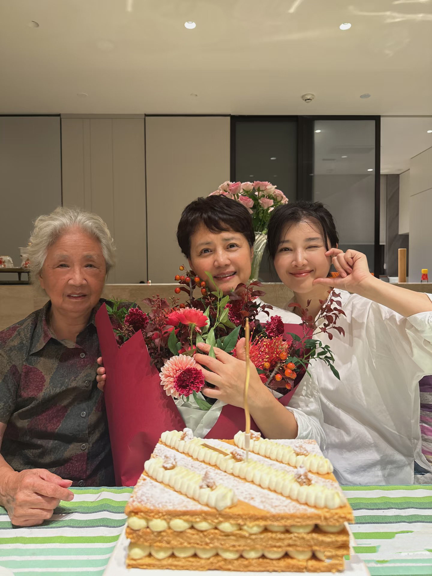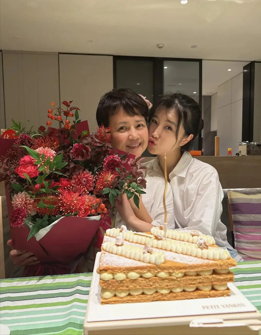 从她生日时的全家福照片能看出来,岁月在她脸上留下的痕迹并不明显,整个人的状态特别好。