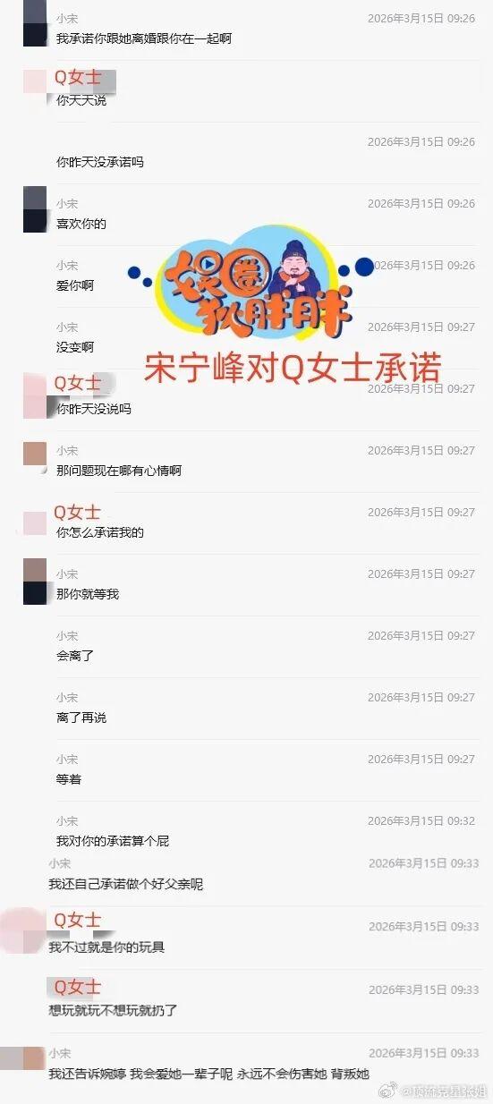 宋宁峰直接翻脸不认人,轻飘飘地丢下一句“承诺算个屁”,彻底打碎了Q女士的幻想。他还找借口,说自己的演艺事业刚有起色,刚翻红没多久,要是这段婚外情曝光,自己的前途就全毁了,所以他不断地向Q女士道歉、乞求原谅,让Q女士再等等,再忍忍。