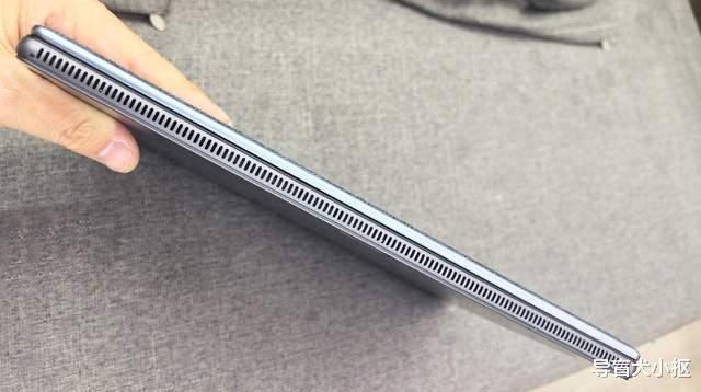 来到机身正面,Duet5的屏幕布局稍微有些不同。首先是12.35英寸的大小,并非大众模具,而是全新定制,另类的尺寸也决定了它的边框布局要跟着变。于是,Duet5的屏幕边框比例,是左右更窄,上下更宽,和一些手机屏幕的边框设计思路是一样的,但平板毕竟是横版的,所以看着还是有点别扭。Duet5的屏幕边框和安卓版的平板四边等宽的边框的差异很大,好在win系统的板子不用频繁横竖屏切换,横版全屏观看,视觉焦点在内容上,很快习惯下来。