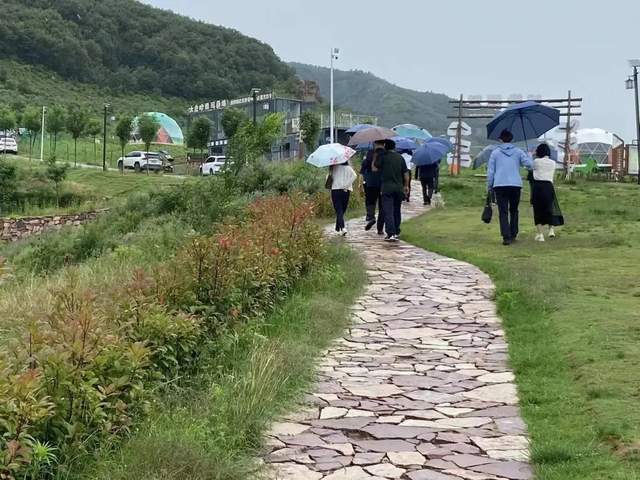 之后,全体荣誉村民冒雨参观并调研了村里的部分景区、露营地、民宿、停车场、食用菌种植基地和农业园区等。