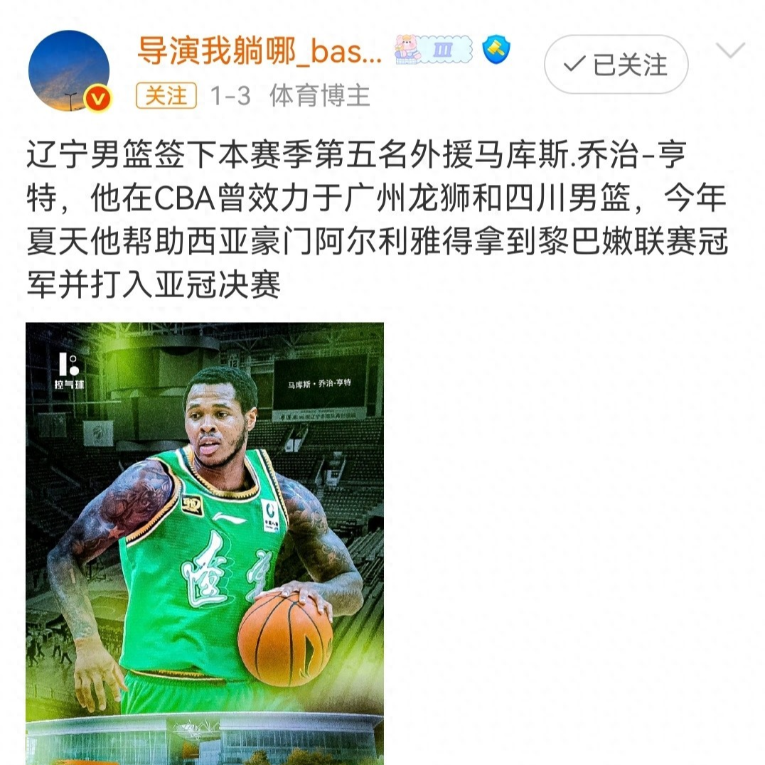 根据多位资深媒体人爆料,辽宁男篮已经与新外援马库斯亨特完成了签约。目前他正办理来华手续,将在本周抵达沈阳。个人认为其完成注册到出场比赛,可能要在下周。
