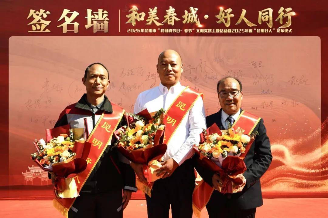 2月6日,2026年昆明市“我们的节日·春节”文明实践主题活动暨2025年度“昆明好人”发布仪式在五华区南屏步行街广场举行。昆明市工会系统推荐的者发贵、胡荣海、陈昆三名优秀职工获评2025年度“昆明好人”,并受邀到场接受荣誉。