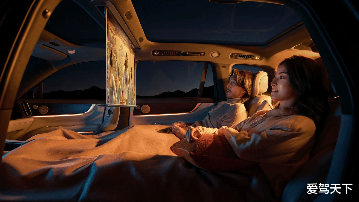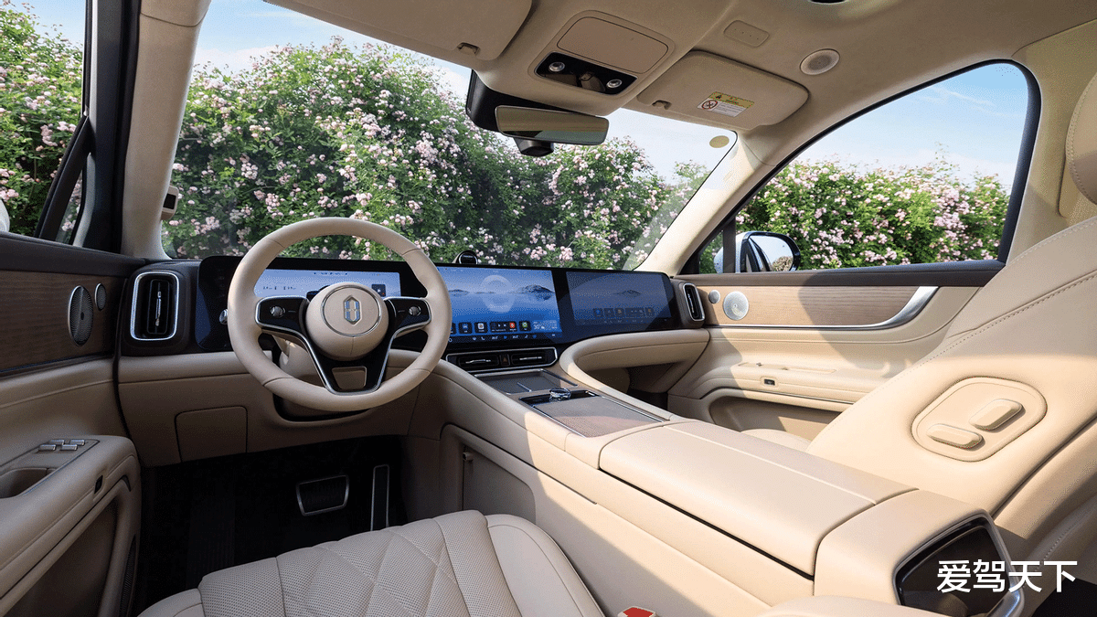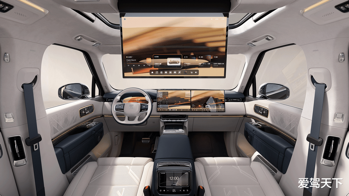 座舱主打奢享数字化体验,中控与副驾配备两块16英寸3.5K OLED 屏,后排专属17英寸OLED显示屏可沿车厢两侧导轨实现最大88厘米的前后滑移,还支持5档角度调节,能兼顾车内每个座位的使用需求。需注意的是,该滑移屏为选装配置,即便顶配车型也需单独选装,未选装时后排屏幕尺寸为6.3英寸。搭配13英寸全液晶仪表+AR-HUD,行车信息显示清晰直观,车机系统支持5G、语音控制及OTA升级,操作流畅丝滑,科技感与仪式感拉满,仅智驾算法的实际体验略逊于华为体系的问界M9。