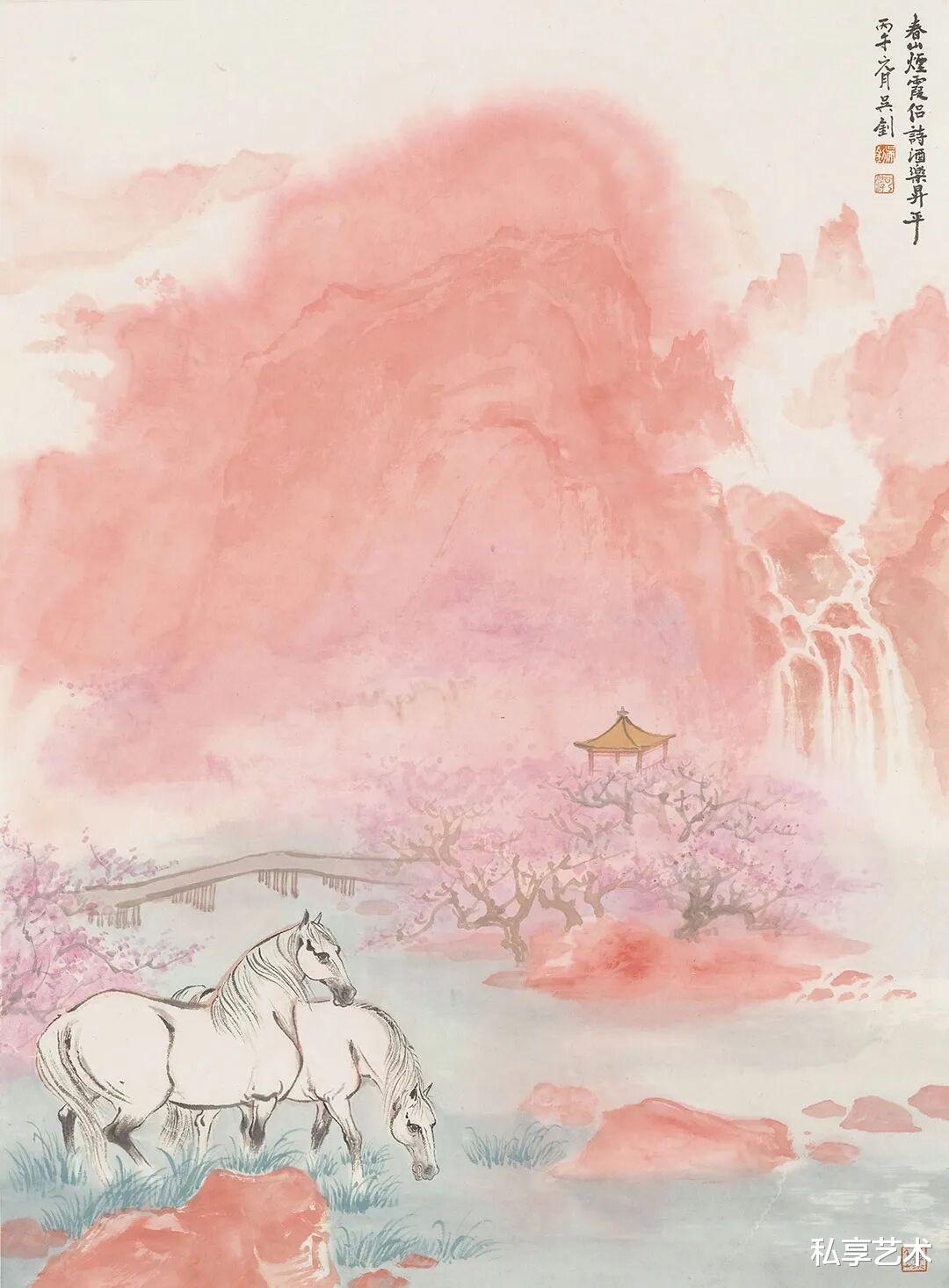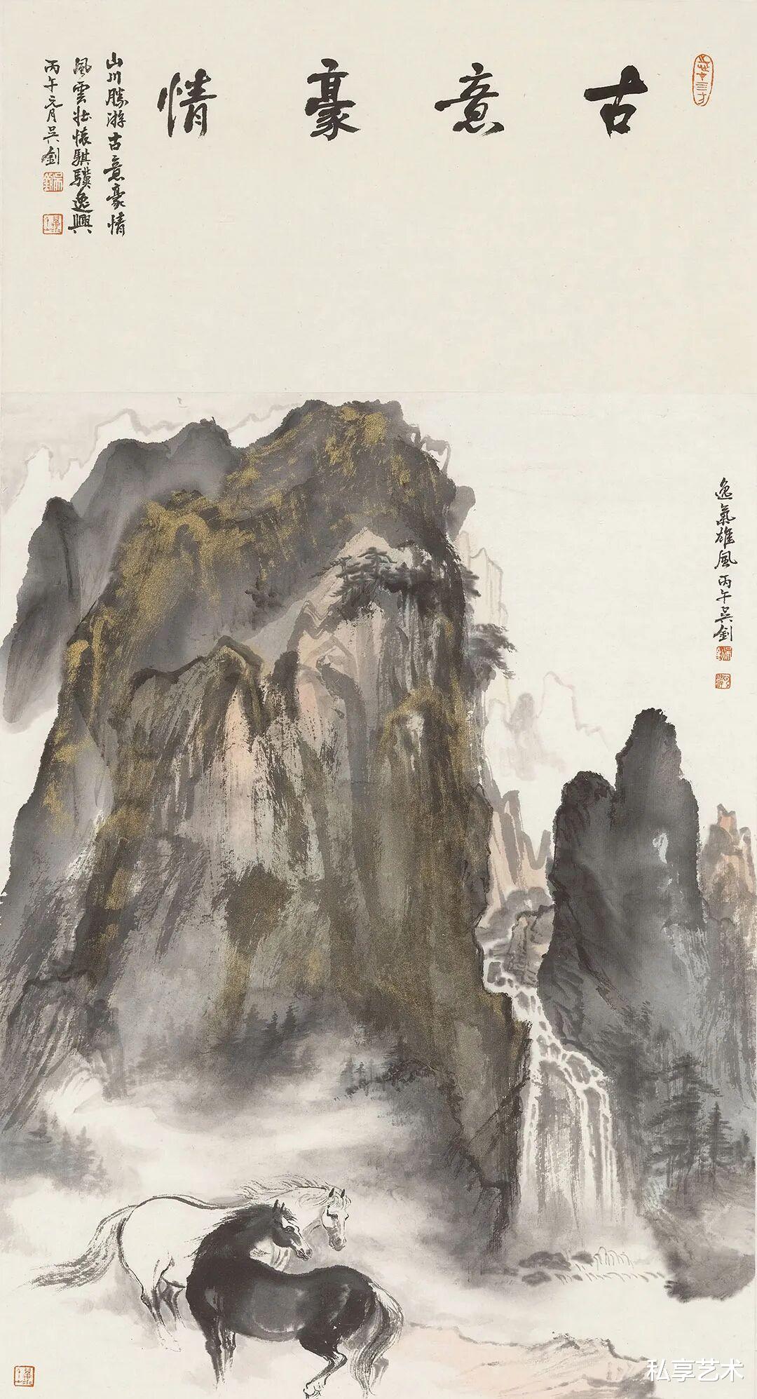 双骏鸣泉-纸本设色-97×61cm-2026