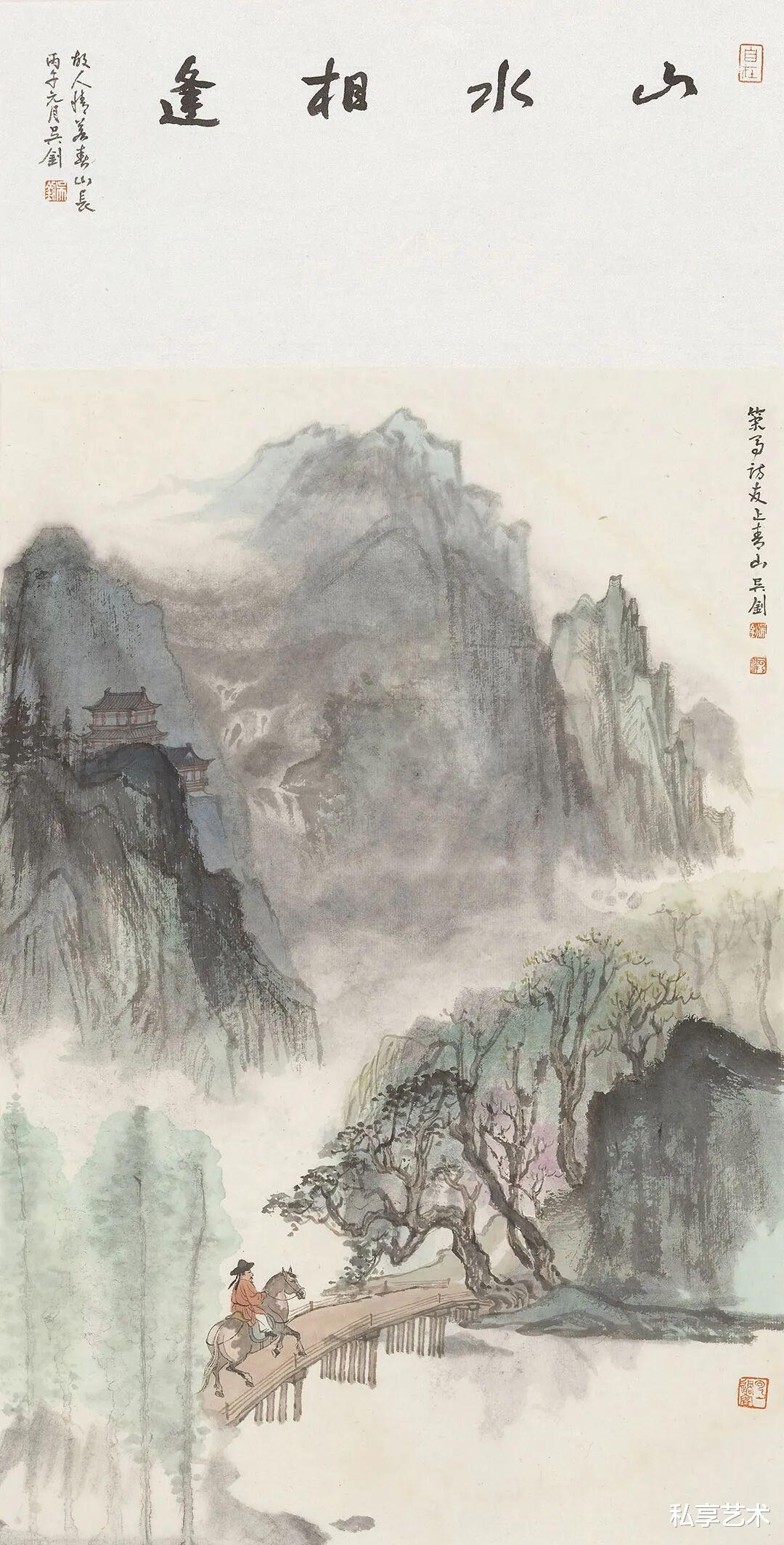 策马访友-纸本设色-65×35cm-2026