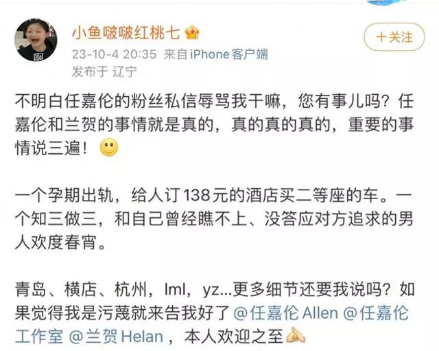 然而,令人震惊的是,不久后,一位名为李姓(化名)的知情人,实名在网络上发布了一个长篇告白,详细描述了两人之间的关系。李姓(化名)称,他与兰贺曾是高中同学,两人关系一直非常好。而他也因此,与任嘉伦有过数次交往。