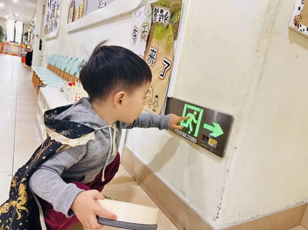 回到幼儿园后,变化悄然发生。走廊里的“安全出口”标志,成了孩子们每天检查的对象;