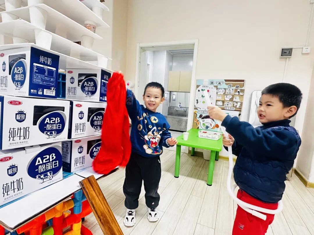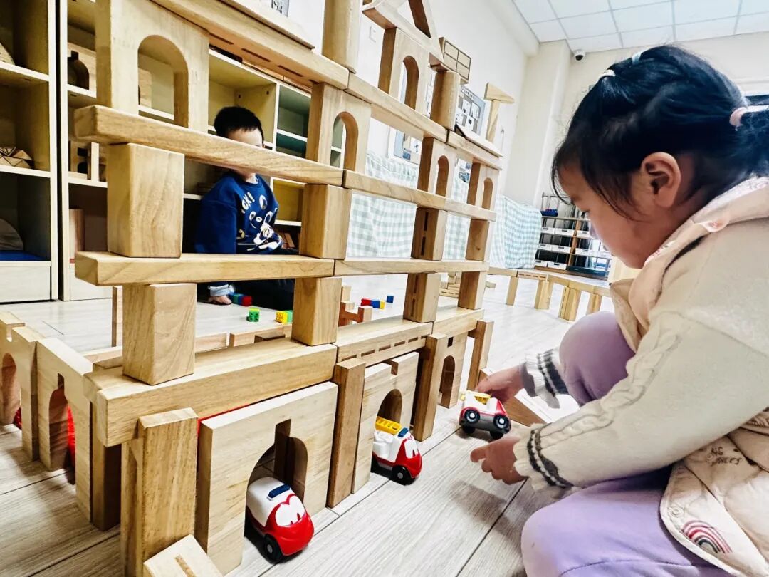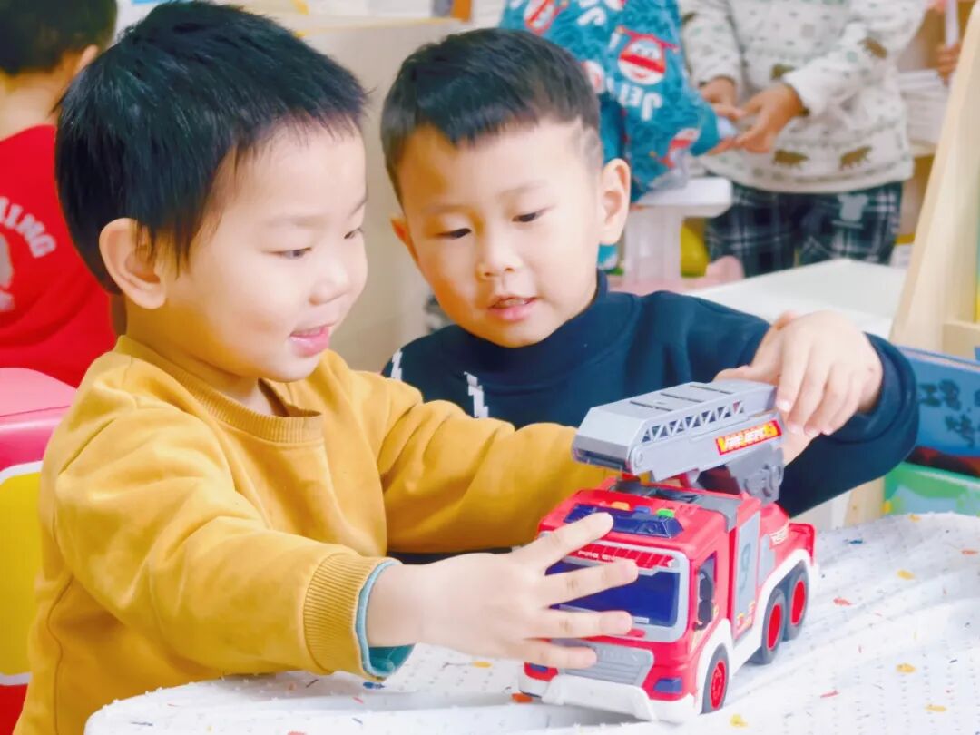 积木区多了一座“消防站”,孩子们轮流扮演指挥员、驾驶员、救援员;