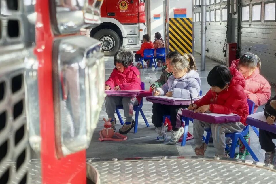 有时,在操场上会听到消防车出发时的声音,孩子们会驻足......