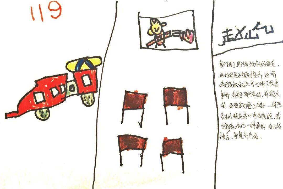 是因为——“119”不是三个数字,是真的人、真的心跳。孩子需要看见真实的世界,而不仅仅是书本里的符号,他们需要理解“安全”背后的代价,才会真正珍惜平安的日子。他们需要看见那些默默守护社会的人,才能学会尊重、感恩与责任。他们需要在“害怕”与“勇敢”的对话中,建构属于自己的勇气观。也让那些负重前行的人,被一群小小的生命用最纯粹的真诚拥抱、用最清澈的目光致敬,被一份不掺杂质的温暖与信赖温柔包裹。