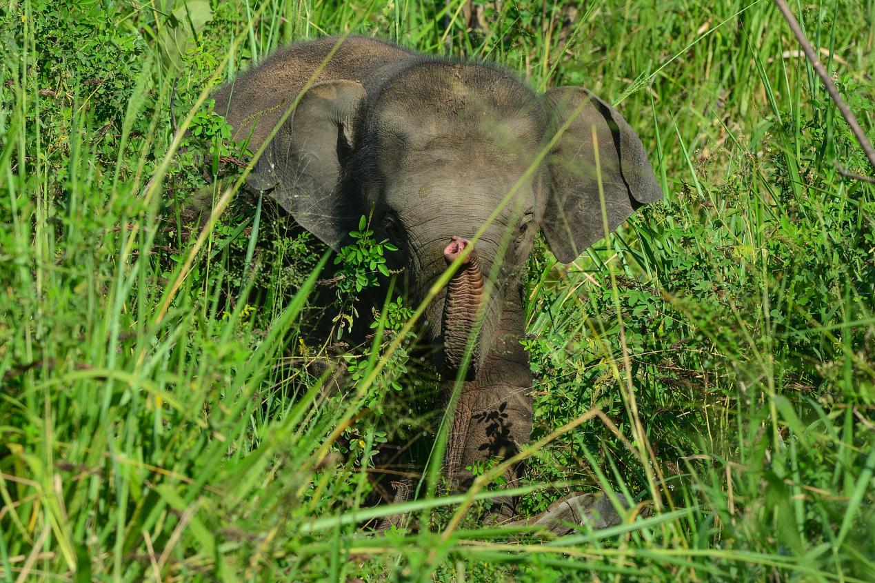 老虎亲自追杀梅花鹿,梅花鹿吓得四处乱跑。大象看到后,立刻让梅花鹿和自己同吃同睡。几天过去了,老虎还是没办法捉到梅花鹿。