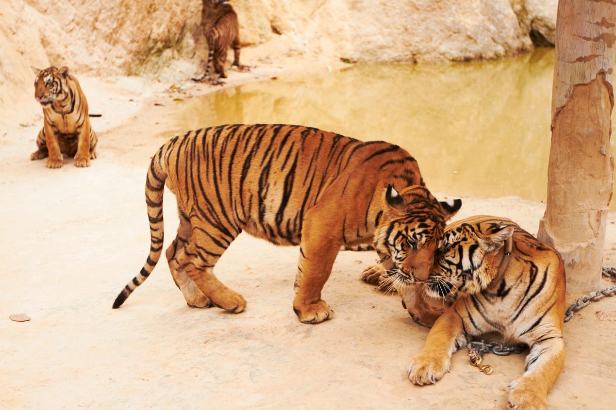阳光透过浓密的树叶,洒在森林的土地上。一只老虎在林间悠闲地踱步,他的每一步都带着不可一世的威严。小动物们见到他,纷纷低下头,不敢直视。老虎的眼神扫过之处,所有生物都噤若寒蝉。