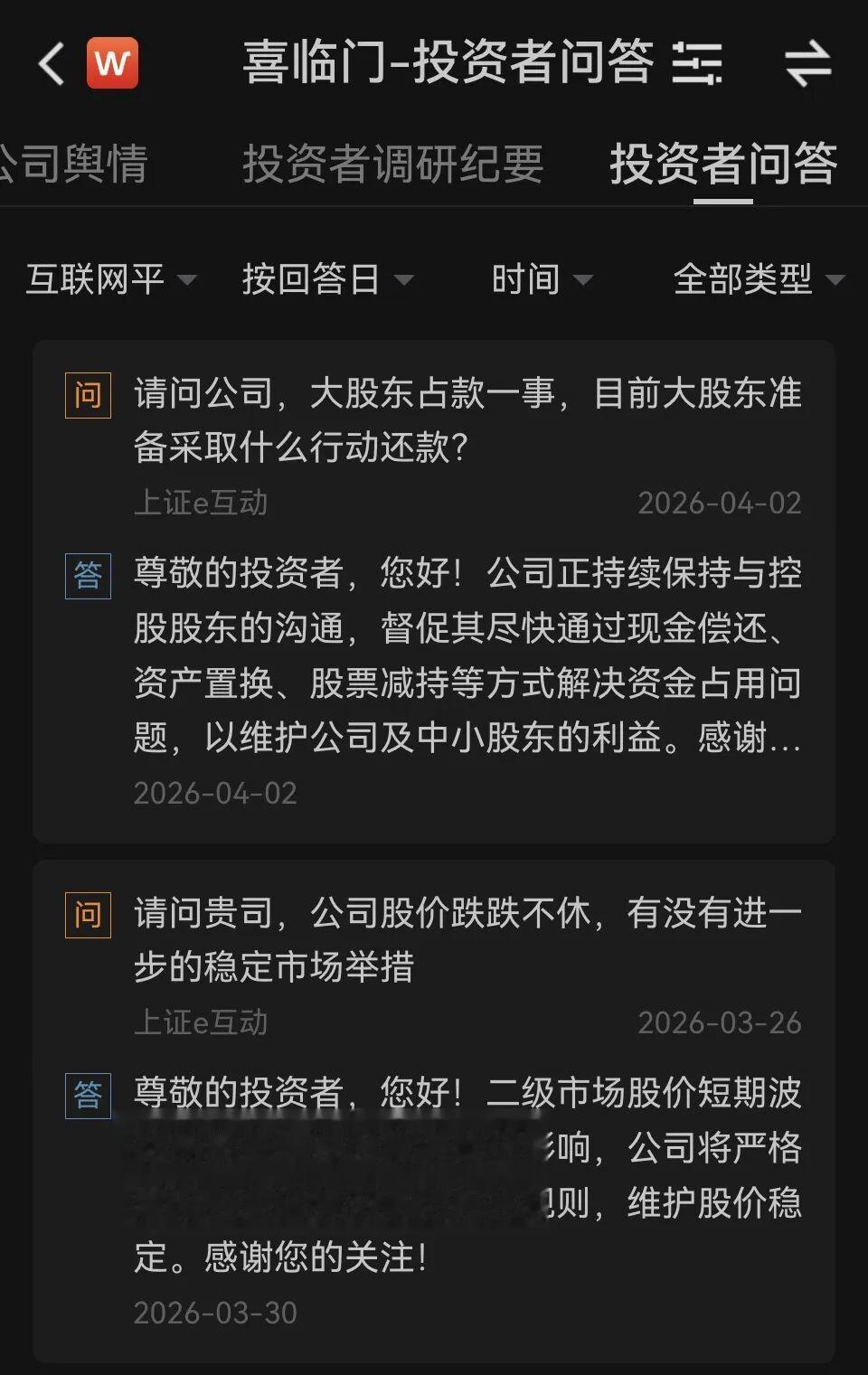 4月2日,有投资者在互动平台焦急追问还款计划。官方回应称,正督促控股股东通过“现金偿还、资产置换、股票减持”等方式解决。