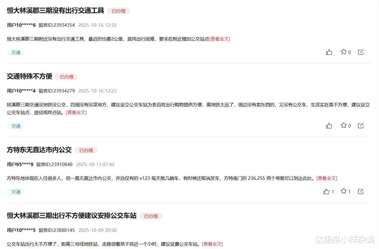 还有个小区,业主入住后,交通颇为不便,在某网站上对于公交的诉求非常多。