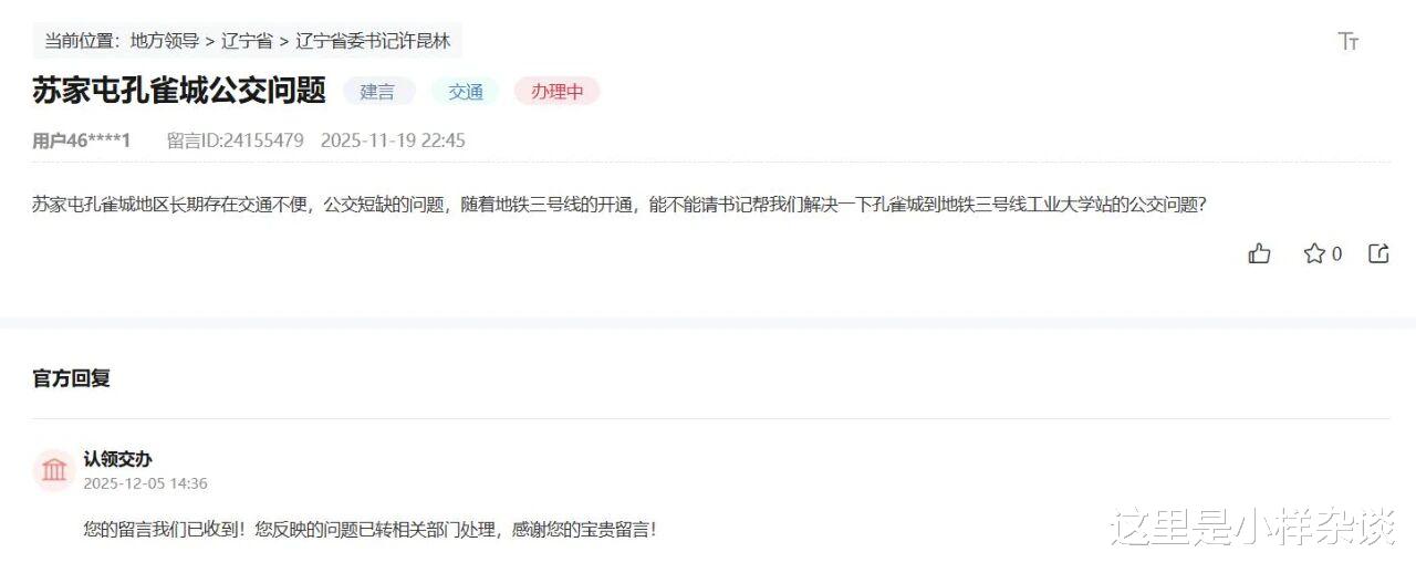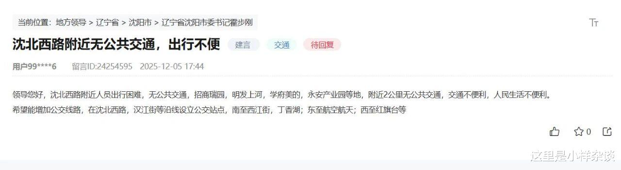 这个小区就是恒大·林溪郡三期,这个小区西边联通四四环,可以实现南向东来到这个小区,这个小区向西进入四环开往北方向,南边道路差最后到沈辽路一段,这最后一段是土路,纯纯的“孤岛”一样的存在。虽然很多业主有通行公交的诉求,但是这个位置短时间内大概率不会有公交线路的。只能前往1公里之外的嘉泰城公交站乘坐公交车。这些小区吧,要不入住率还不多,居民较少,要不位置实在是有点太难够得上公交,公共交通不给力也是无奈的妥协。但是有个大体量的地方公交也一直不太给力,这就是诉求一直断过的苏家屯区沈水新城板块,经过华夏幸福的多年开发,这个板块已经形成了一个非常大的体量,但是板块内公交还是有点少,V115路只能到苏家屯老城区,这附近的地铁站是一个也够不到。这个板块的居民从沈阳地铁九号线开通时候起就希望有一条开往地铁站的公交,到了沈阳地铁三号线西端开通也没有实现,因为这里是特殊的苏家屯,这个板块的公交接驳地铁是不是得等到沈阳地铁十号线南延长线开通了?那一天好像还需要两年多呢。