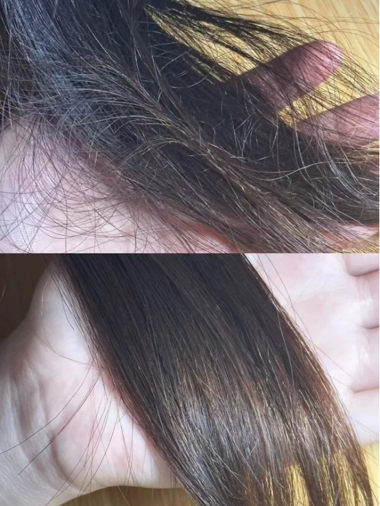 念念也提到,使用这款精油后,她并没有感受到发质的显著变化,尤其是发尾还是比较粗糙的状态,亮度和顺滑度都没有明显提升。