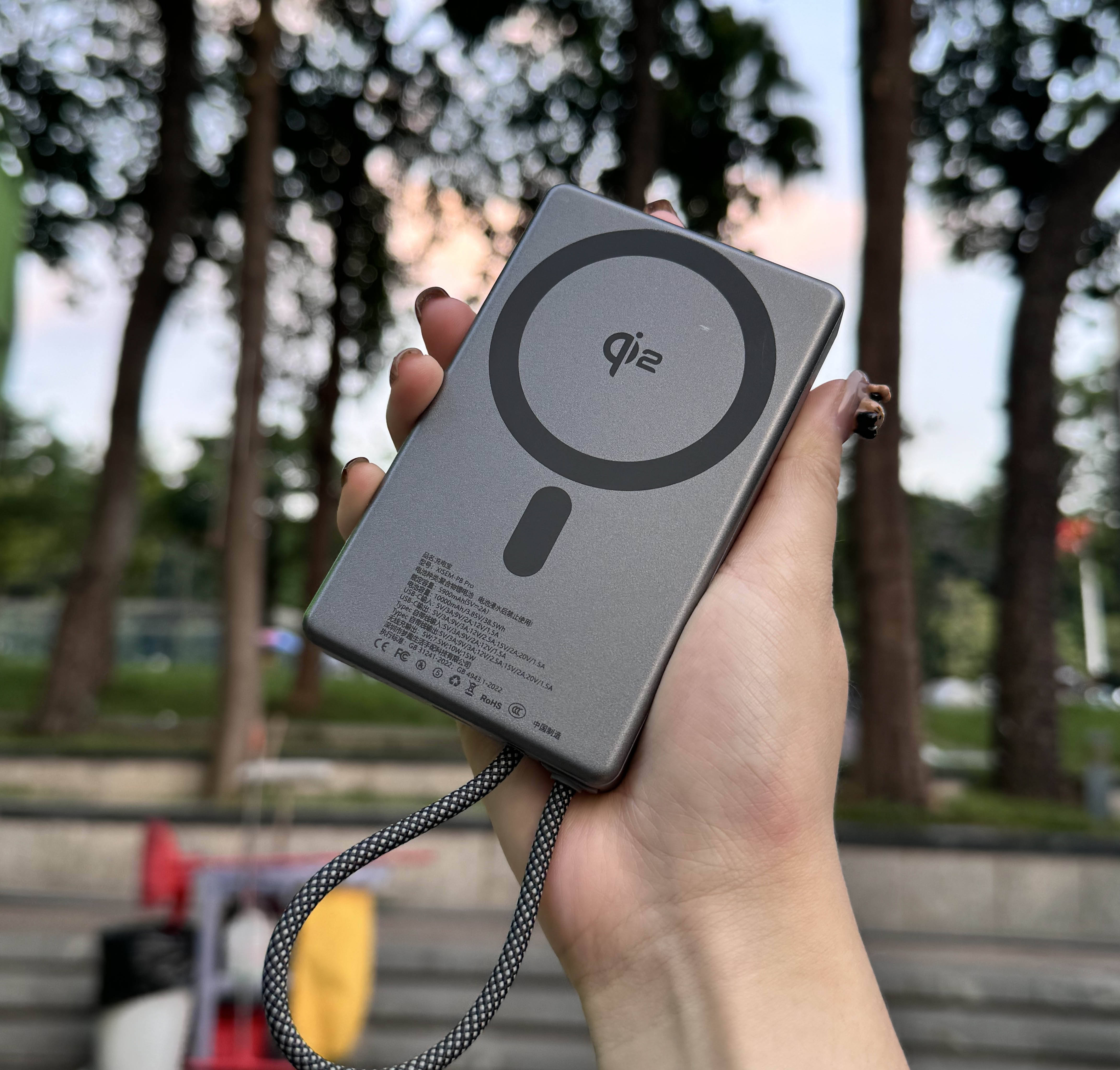配置方面主打实用省心,10000mAh 的电池容量,日常通勤给手机充个一次多完全够用。22.5W 的主流功率,应付日常补电不算慢,应急回血很靠谱。自带的 Type-C 线经过抗弯折测试,耐用度在线,不用怕用久了线材断裂,出门也不用额外带线,特别方便。