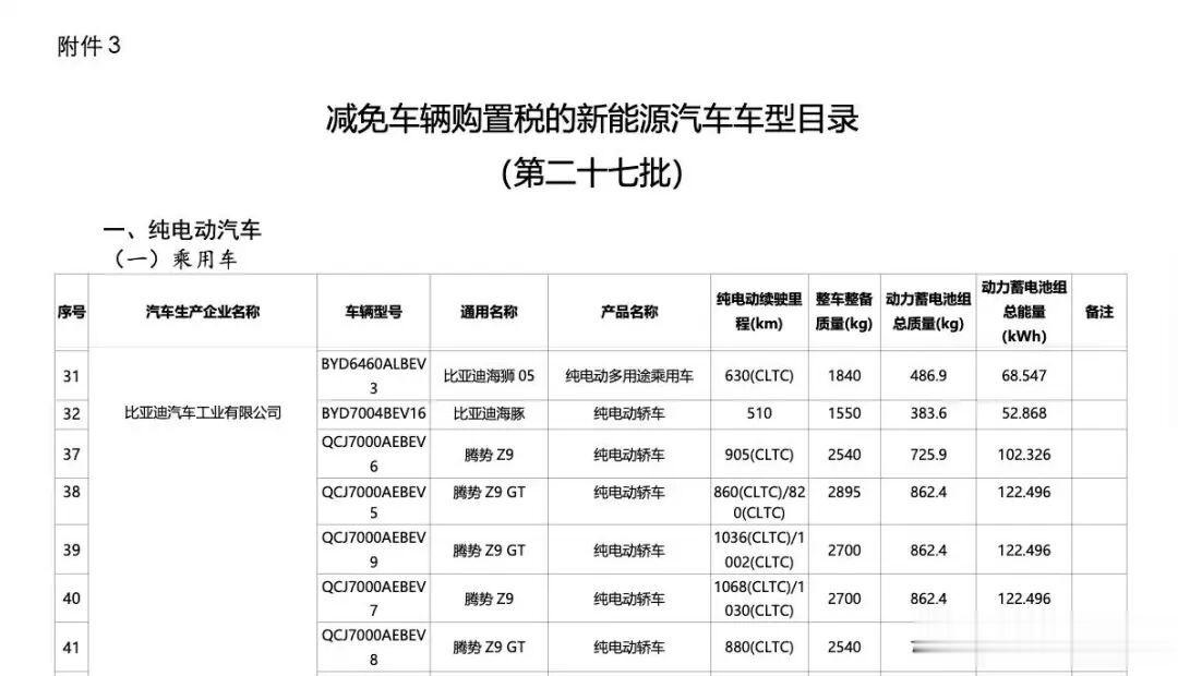 据电动知家了解,今年2月工信部发布的《减免车辆购置税的新能源汽车车型目录(第二十七批)》披露了新款腾势Z9及腾势Z9GT的申报信息。申报信息显示,全新腾势Z9GT同样搭载了102.326kWh 和 122.496kWh 两种规格电池组,CLTC 纯电续航里程为 820km、860km、880km、1002km、1036km。有趣的是,采用相同电池组的标准版 Z9,其 CLTC 续航里程可达 1,068 公里(664 英里),这将使其成为续航里程最长的电动汽车,但 Denza 尚未正式宣布。