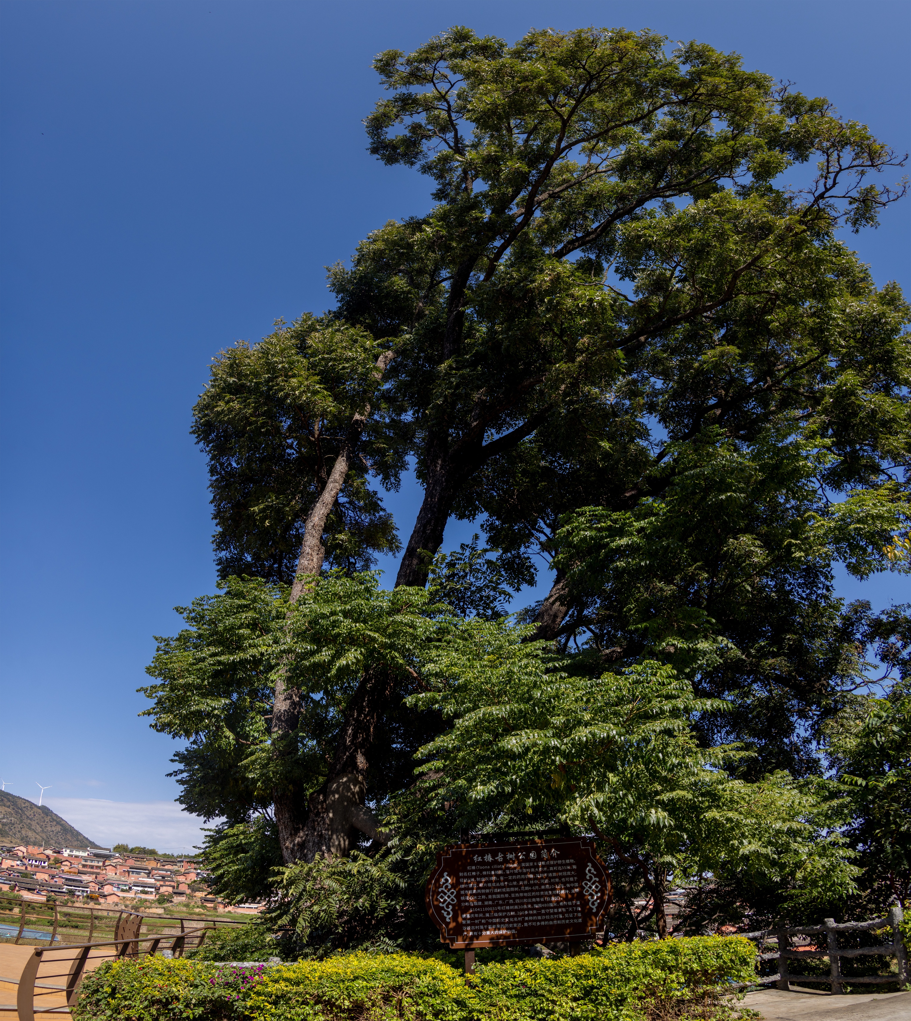 离开村子,我们前往附近的金沙江大峡谷。路上经过“红椿古树公园”,这棵红椿相传植于清朝嘉庆年间,已有200多年历史,此处是观看迤沙拉全景的好地方。
