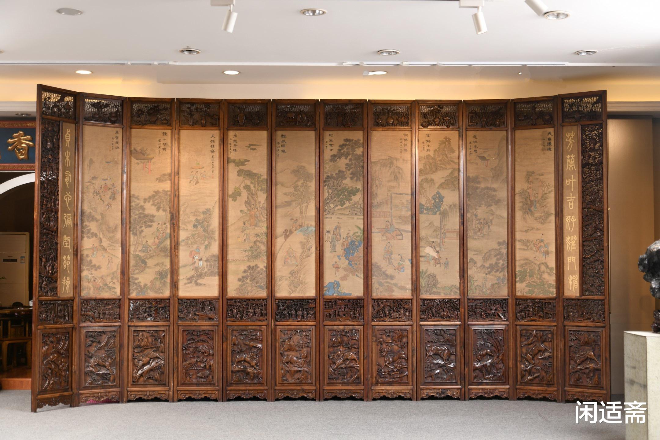 这款金丝楠木老围屏,为民国时期名家之作,规制恢弘、工艺精湛,主体材质选用珍贵金丝楠木制作,共计十二扇,单扇尺寸为宽51cm、高328cm,展开后长达五米有余,体量恢弘、气势磅礴,静置空间之中,自带端庄厚重的气场,尽显民国时期高端藏品的规制与格调,无论是厅堂陈设,还是私人收藏,都足以彰显藏家的深厚底蕴与品味。