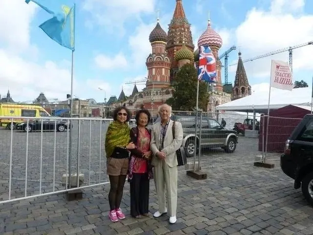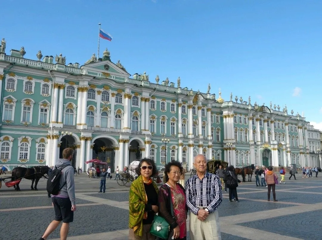 与夫人和女儿在俄罗斯冬宫广场