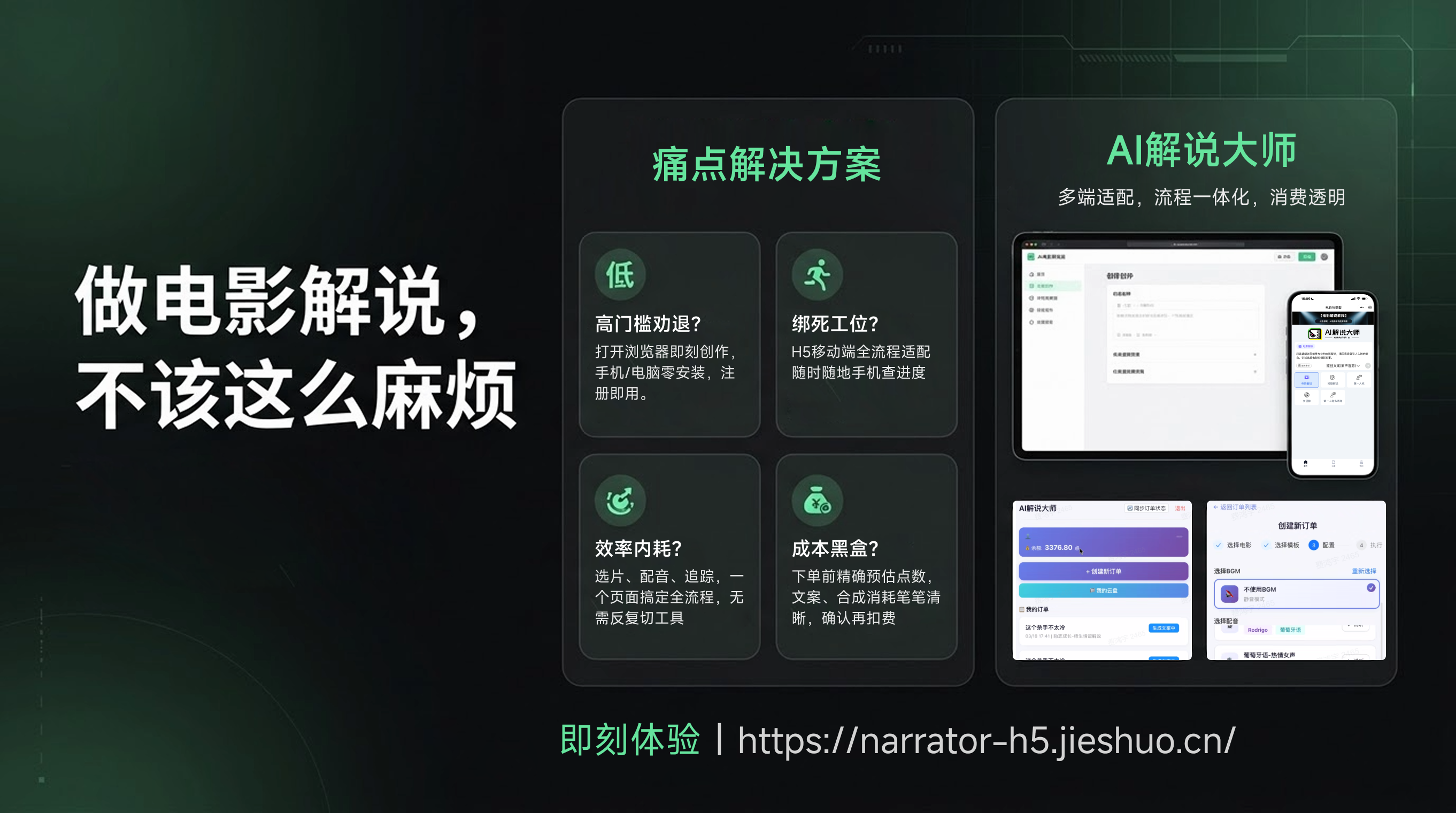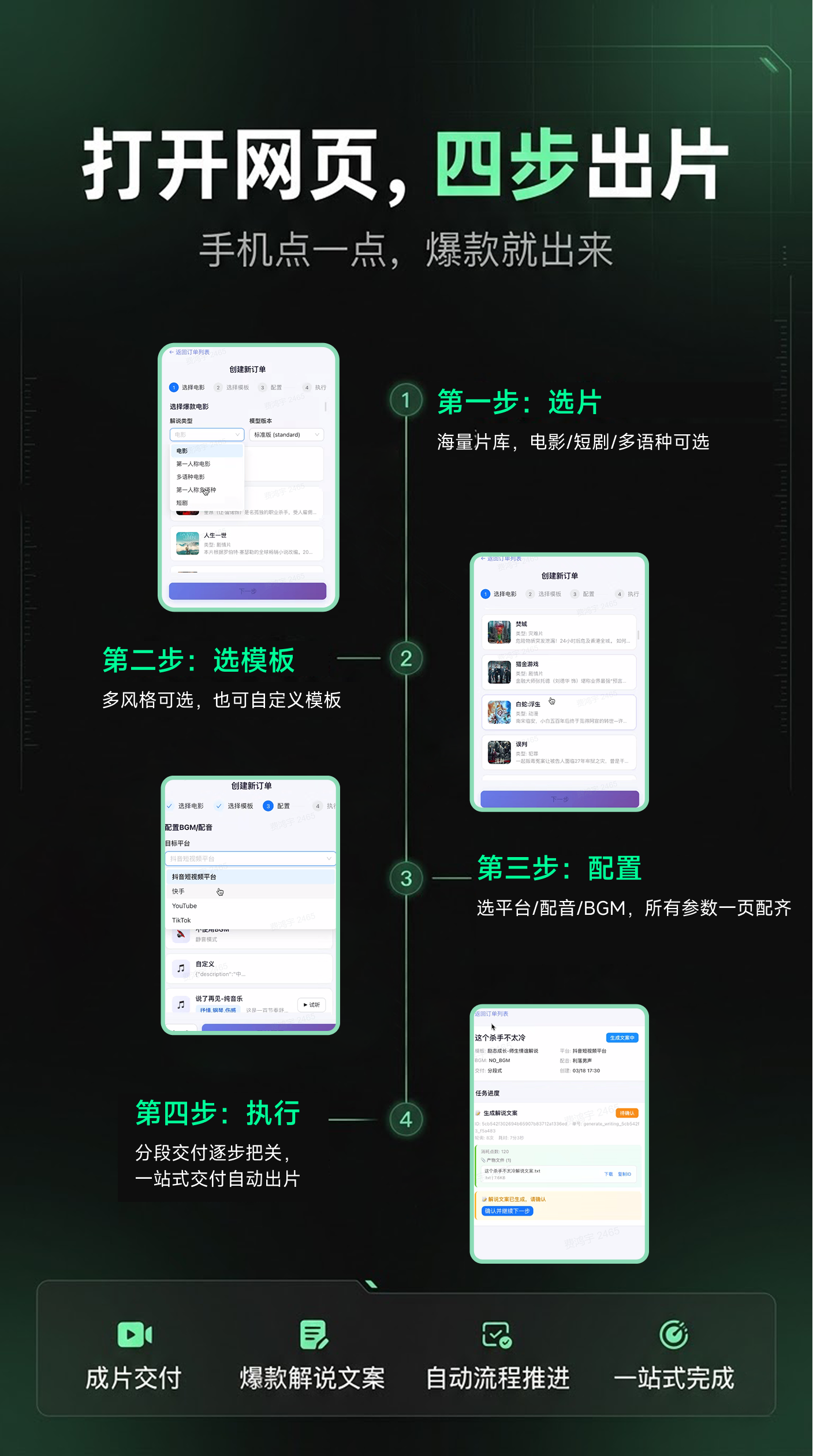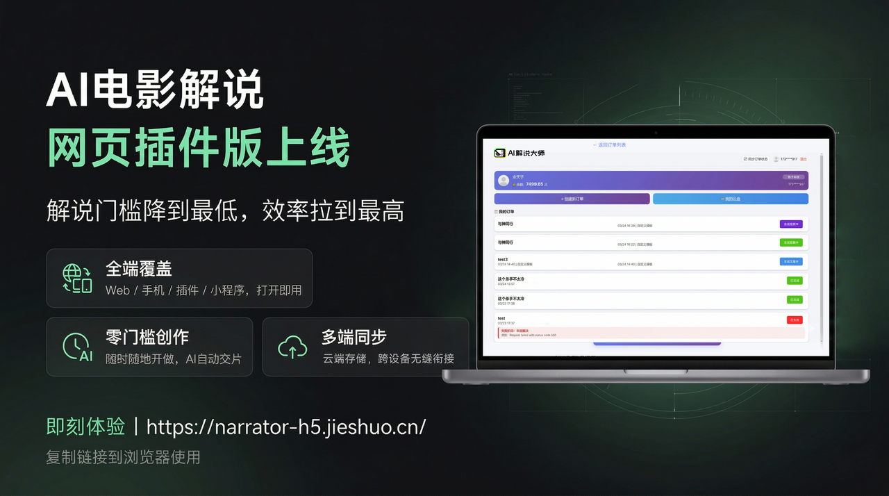 电影解说现在有更轻的做法了:打开浏览器,四步直接出成片,手机电脑都能用。