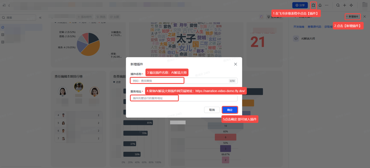 • 第一步: 在飞书多维表格中点击「插件」