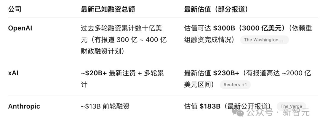 如今,xAI估值被推到了约2300亿美元,紧追OpenAI,远超Anthropic。
