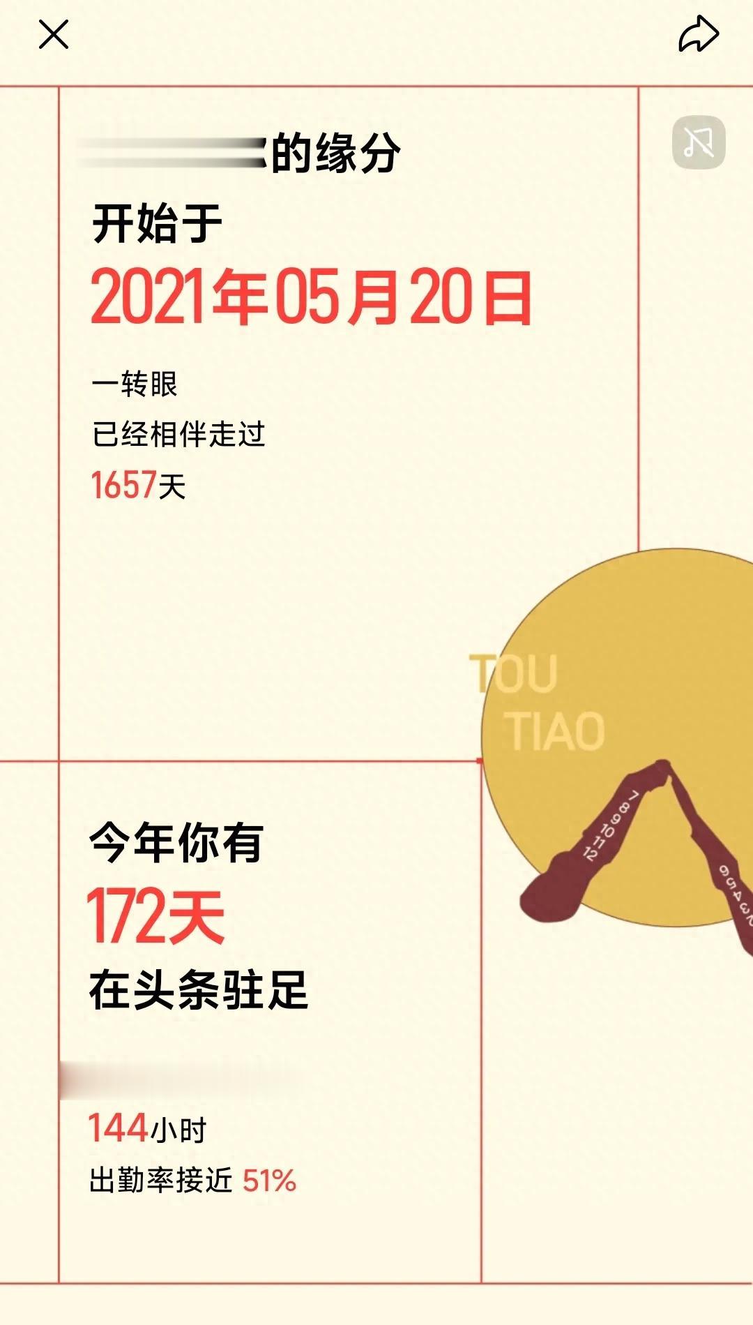 头条的年度报告出来了,来好好说一说自己的感受。2021年5月20日,一个浪漫的数字组合,成为了我在今日头条的起点。当我看到年度报告上这串数字时,恍然发现已经过去了1657天。这四年多的时光,记录了我的转变——从一个偶尔发动态的普通用户,到一个每天坚持创作的内容分享者。